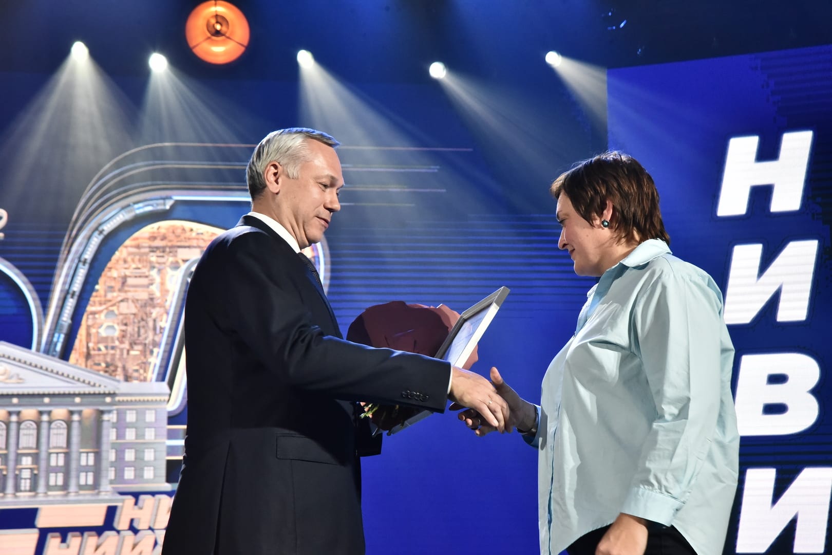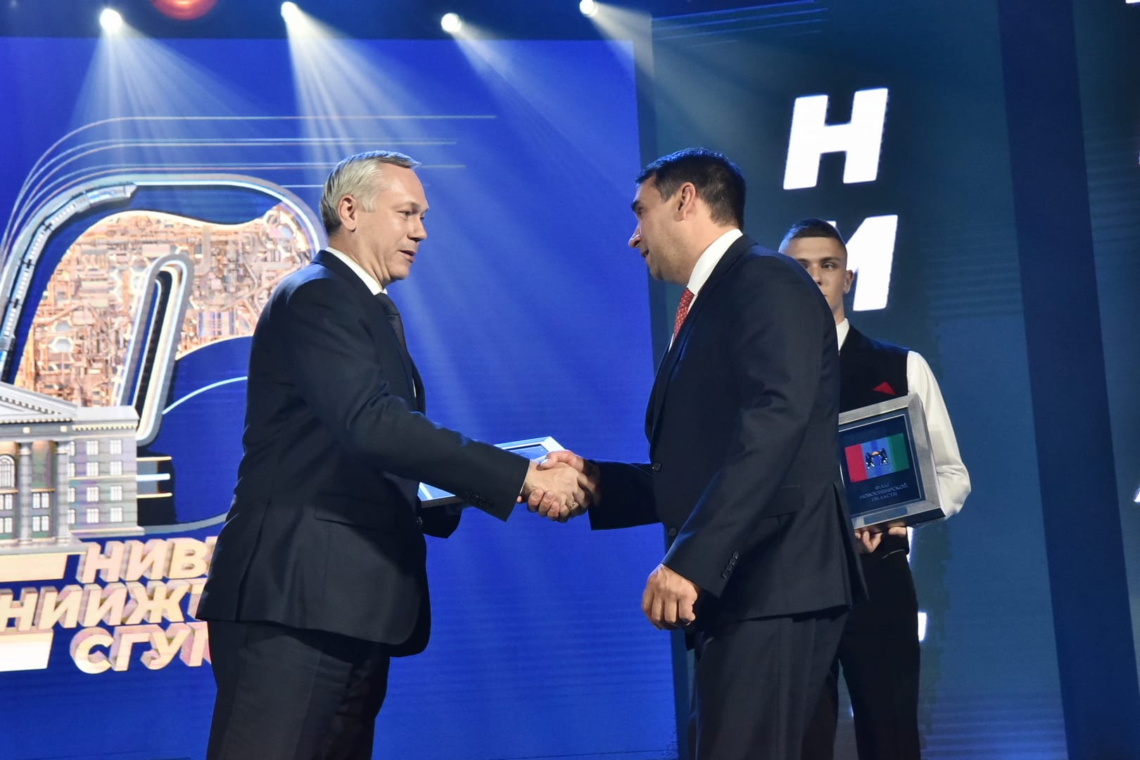 Андрей Травников вручил ректору СГУПСа Алексею Манакову Приветственный адрес для коллектива ФГБОУ ВО «Сибирский государственный университет путей сообщения», а сотрудникам вуза – Благодарность и Благодарственные письма Губернатора Новосибирской области.