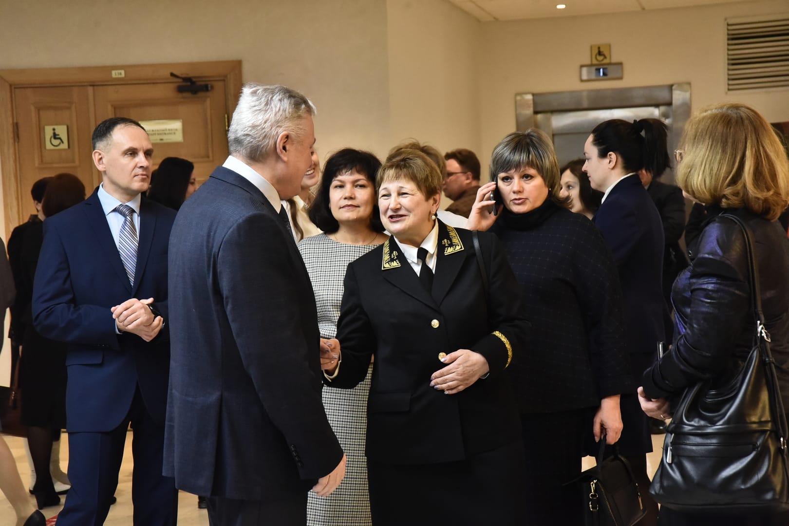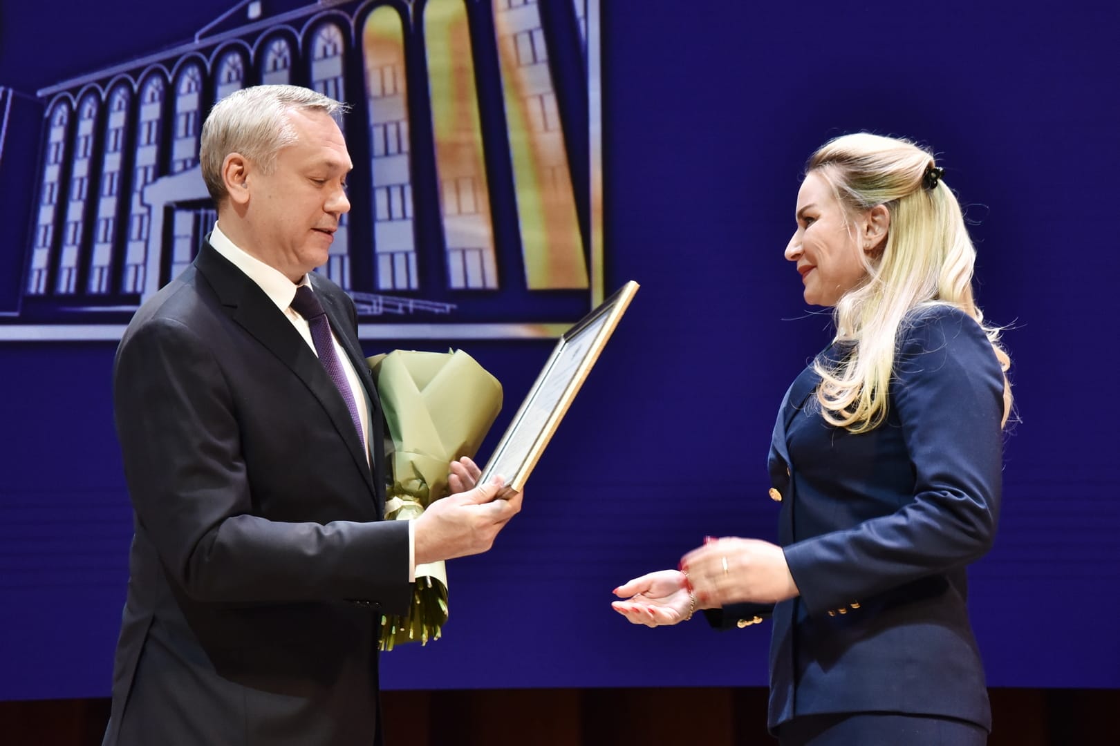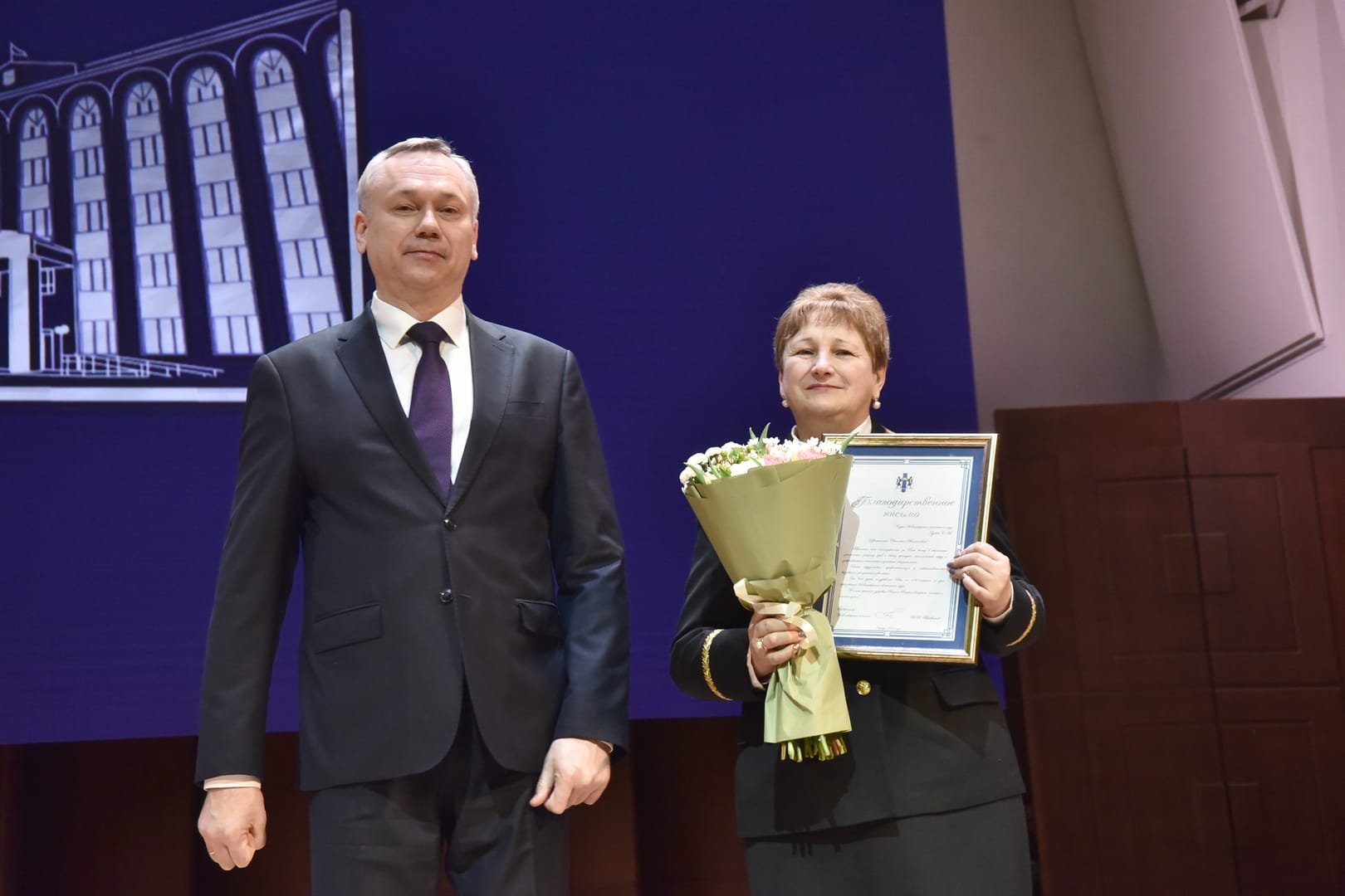 Андрей Травников вручил председателю Новосибирского областного суда Людмиле Симанчевой памятный адрес и подарок коллективу облсуда, а также отличившимся судьям – Благодарственные письма Губернатора Новосибирской области.