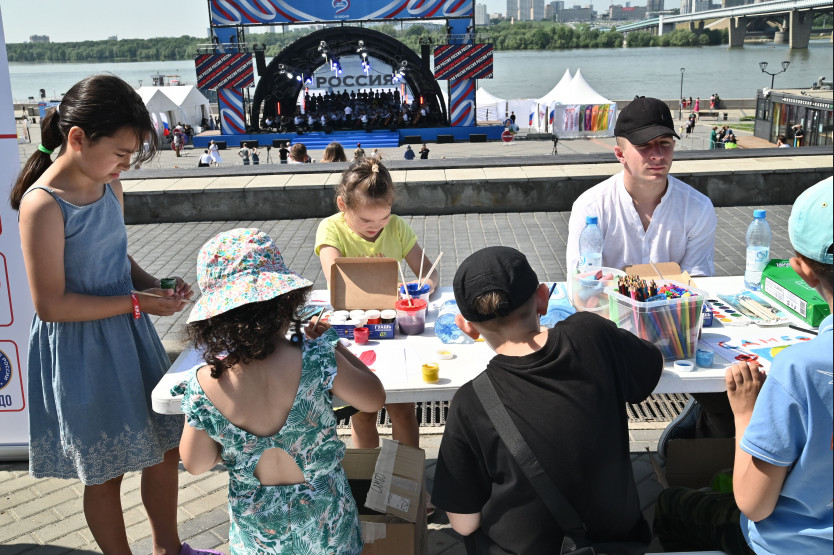 В рамках концертной программы «Вдохновлённые Россией» зрителей ждут выступления государственного ансамбля песни и танца «Чалдоны», ансамбля «Сибиряки» и других ведущих творческих коллективов и артистов Новосибирска и Новосибирской области, а также участников фестиваля-конкурса #ДетиТворчествоДружба из разных регионов нашей страны. Завершат праздничный концерт популярная новосибирская кавер-группа «Ультрафиолет», барабанное шоу «Big Drumma Show» и группа «Аврора» с красочным файер-шоу.