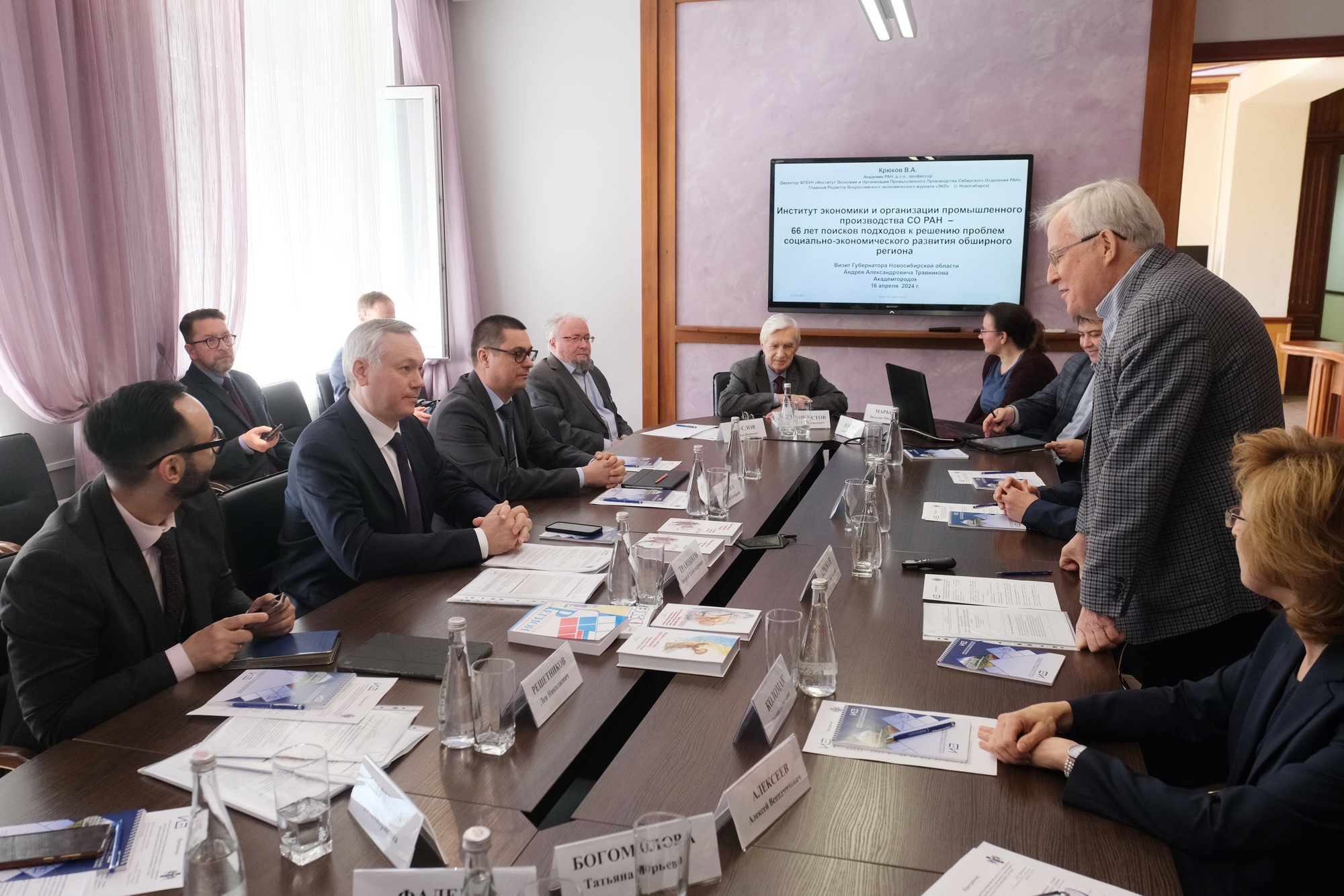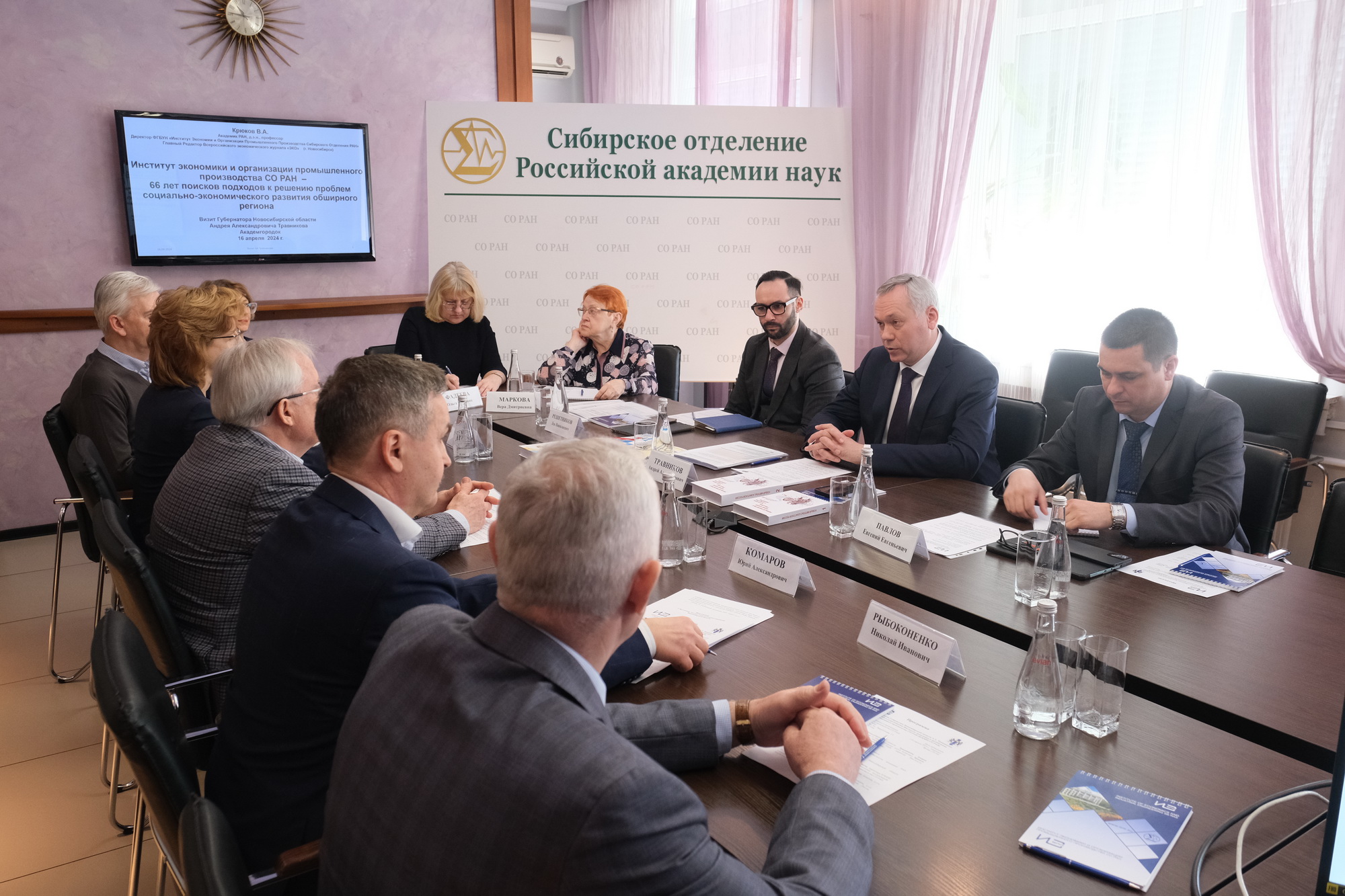 Андрей Травников подчеркнул, что такая встреча важна для команды Правительства региона, и участие специалистов Института экономики и организации промышленного производства СО РАН необходимо при решении важнейших задач развития Новосибирской области. «За последние шесть лет мы пережили многое, достигали успехов, преодолевали ошибки. Но в целом мы, я имею ввиду Правительство Новосибирской области, стали более уверенными в себе. Мы осознали ценность и путь Новосибирской области и экономики нашего региона. Мы знаем приоритеты, что следует развивать и поддерживать, что, может быть, ещё пока не сформировалось или непонятно для нас. Я и мои коллеги заинтересованы в профессиональном, научном, экспертном взгляде на развитие области, на её место в макрорегионе в связи с тем, что идёт большая работа по реализации Стратегии развития Сибирского федерального округа.