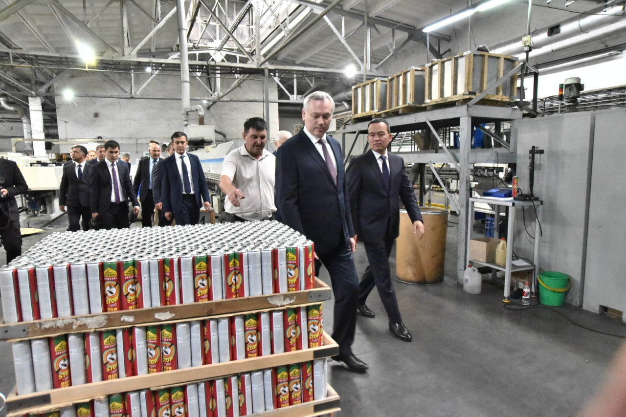 Губернатор Андрей Травников вместе с членами делегации Сурхандарьинской области Республики Узбекистан во главе с Хокимом области Улугбеком Косимовым совершил рабочую поездку на крупные новосибирские предприятия – заводы «Сибиар» и «Элсиб».