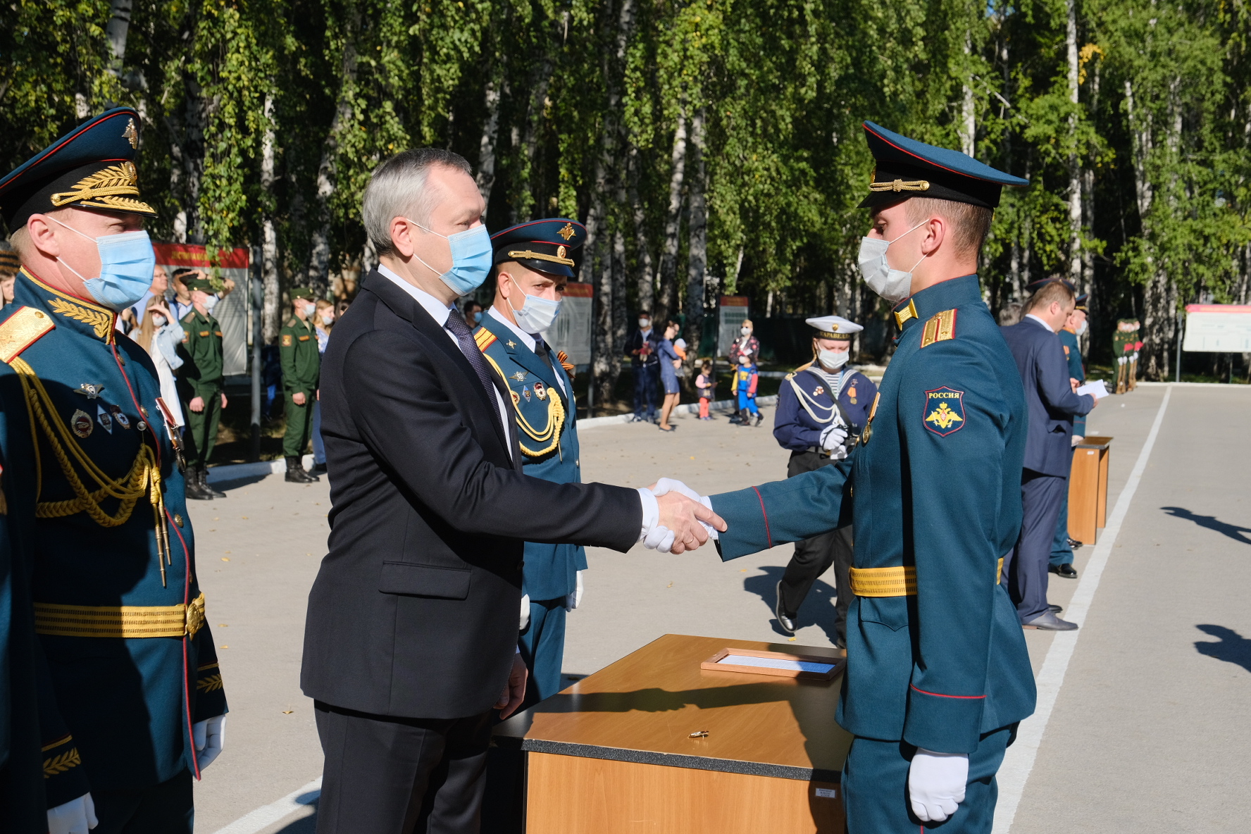 Губернатор Андрей Травников и депутат Государственной Думы ФС РФ Александр Карелин вместе с командиром 39-й гвардейской ракетной Глуховской ордена Ленина, Краснознамённой орденов Суворова, Кутузова и Богдана Хмельницкого дивизии Юрием Десюком приняли участие в церемонии приведения к гвардейской присяге офицеров-выпускников военных ВУЗов России и прибывших к новому месту службы офицеров.