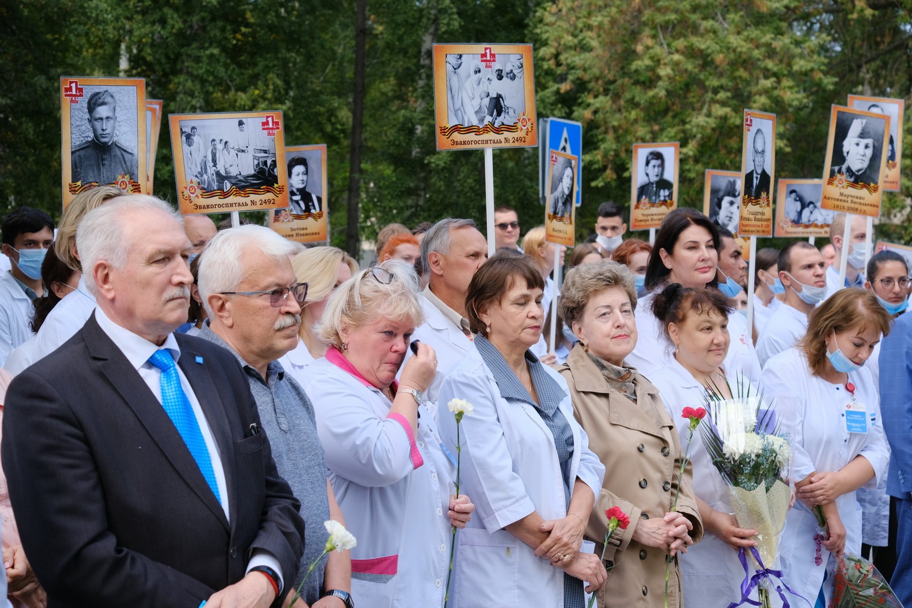 «Благодарю за инициативу открыть в Год памяти и славы, год юбилея новосибирской городской клинической больницы этот замечательный и очень нужный памятник. Медики, трудившиеся в годы войны в Новосибирской области, внесли большой вклад в общее дело Великой Победы во Второй мировой войне. В годы войны в Новосибирской области было организовано больше ста госпиталей, треть из них базировалась в Новосибирске. И крупнейший был развернут в первой городской клинической больнице. Врачи и медсестры сражались за здоровье каждого из 36 тысяч поступивших сюда бойцов Красной Армии. Более 25 тысяч из них восстановили свои силы и вернулись на фронт. Очень важно, что в те непростые годы медики не только оказывали помощь труженикам тыла, воинам, направленным в Новосибирскую область на лечение, но продолжали образовательную, научную деятельность, формировали и крепили ту самую основу, благодаря которой мы сегодня гордимся историей новосибирской медицины, ее сегодняшними возможностями», – отметил Андрей Травников.