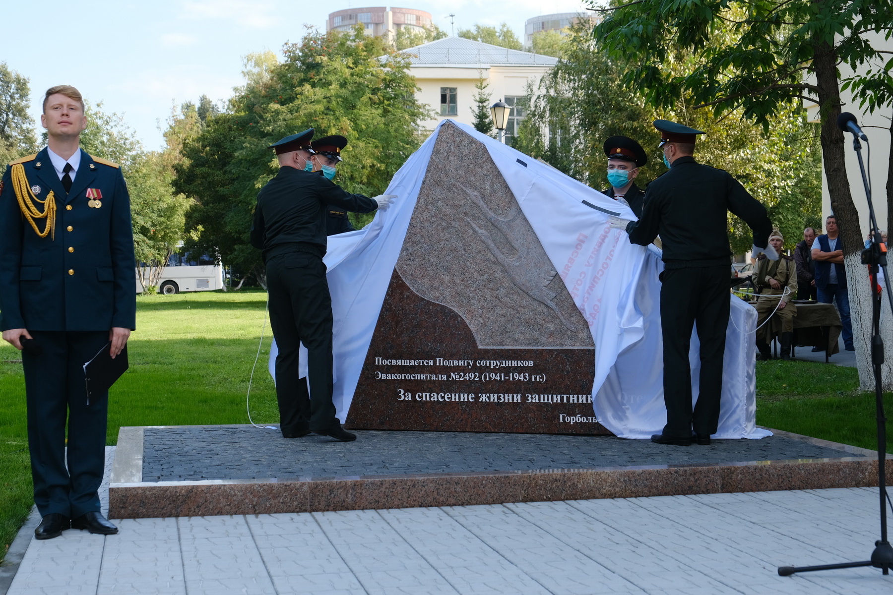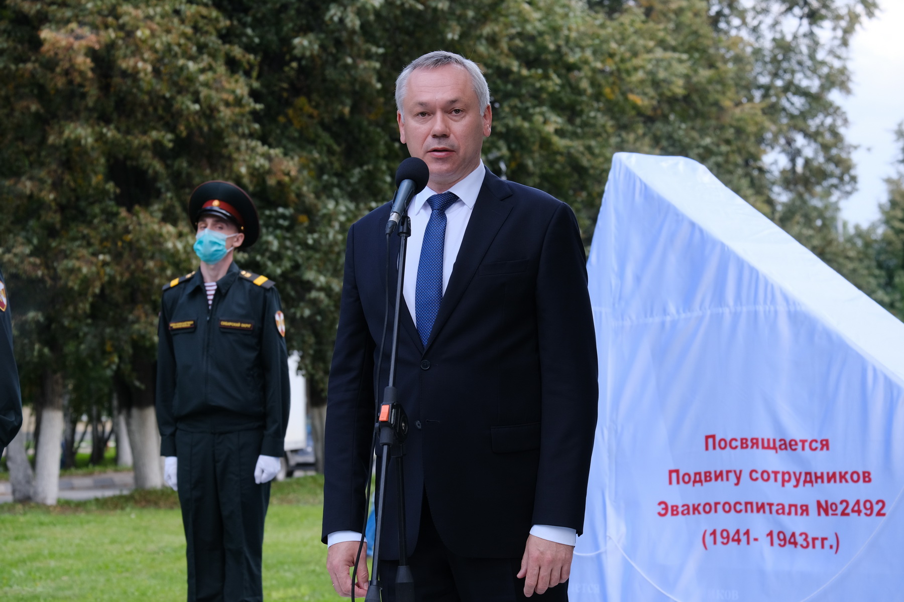 Затем губернатор Андрей Травников принял участие в торжественной церемонии открытия памятника медикам эвакуационного госпиталя №2492, посвященного 90-летию городской клинической больницы №1. Глава региона подчеркнул актуальность сохранения памяти о подвиге медицинских работников, работавших в Новосибирской области в военные годы.