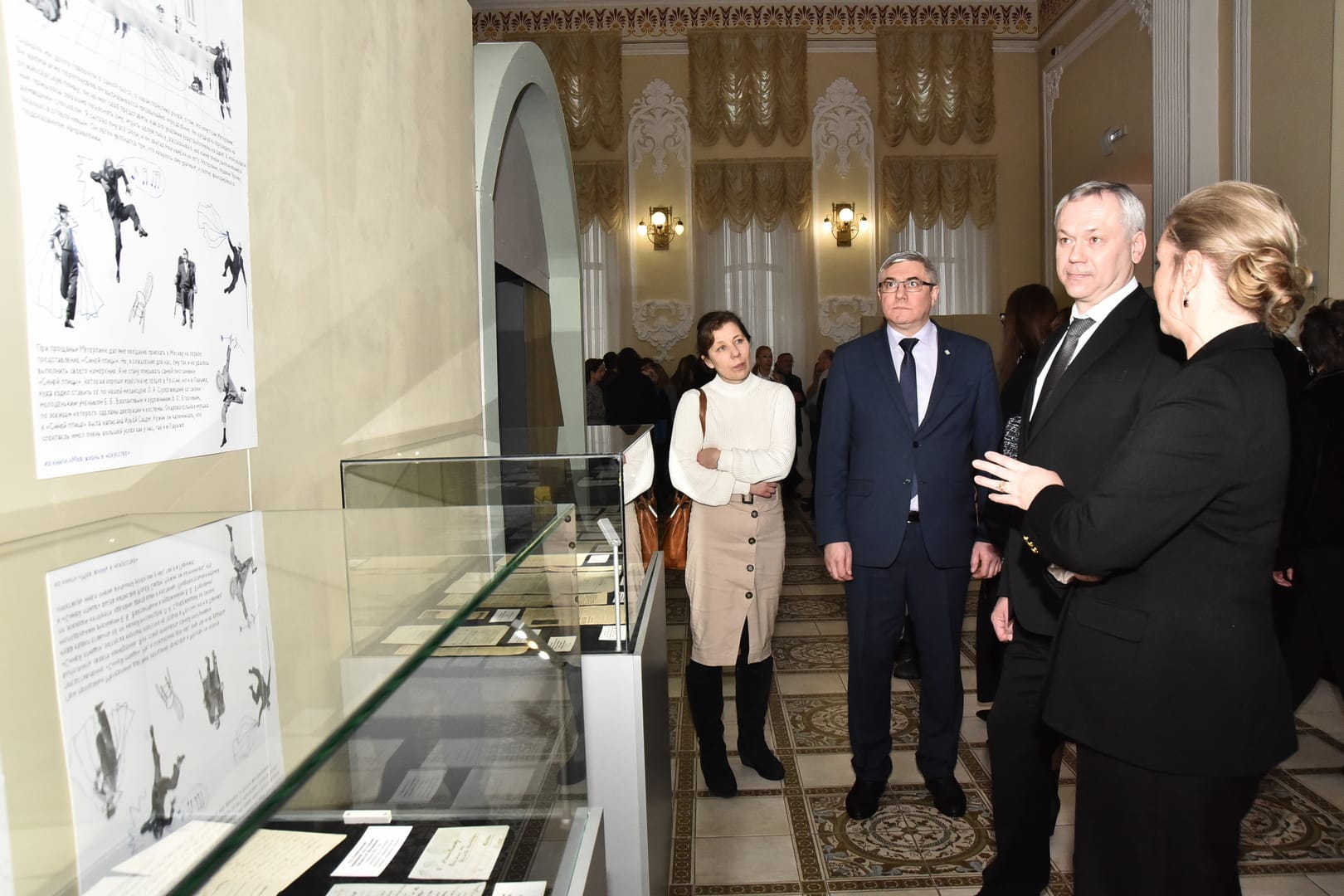 Губернатор Андрей Травников приветствовал организаторов и первых зрителей выставки «Синяя птица. Путь спектакля», открывшейся 1 марта в главном здании Краеведческого музея.