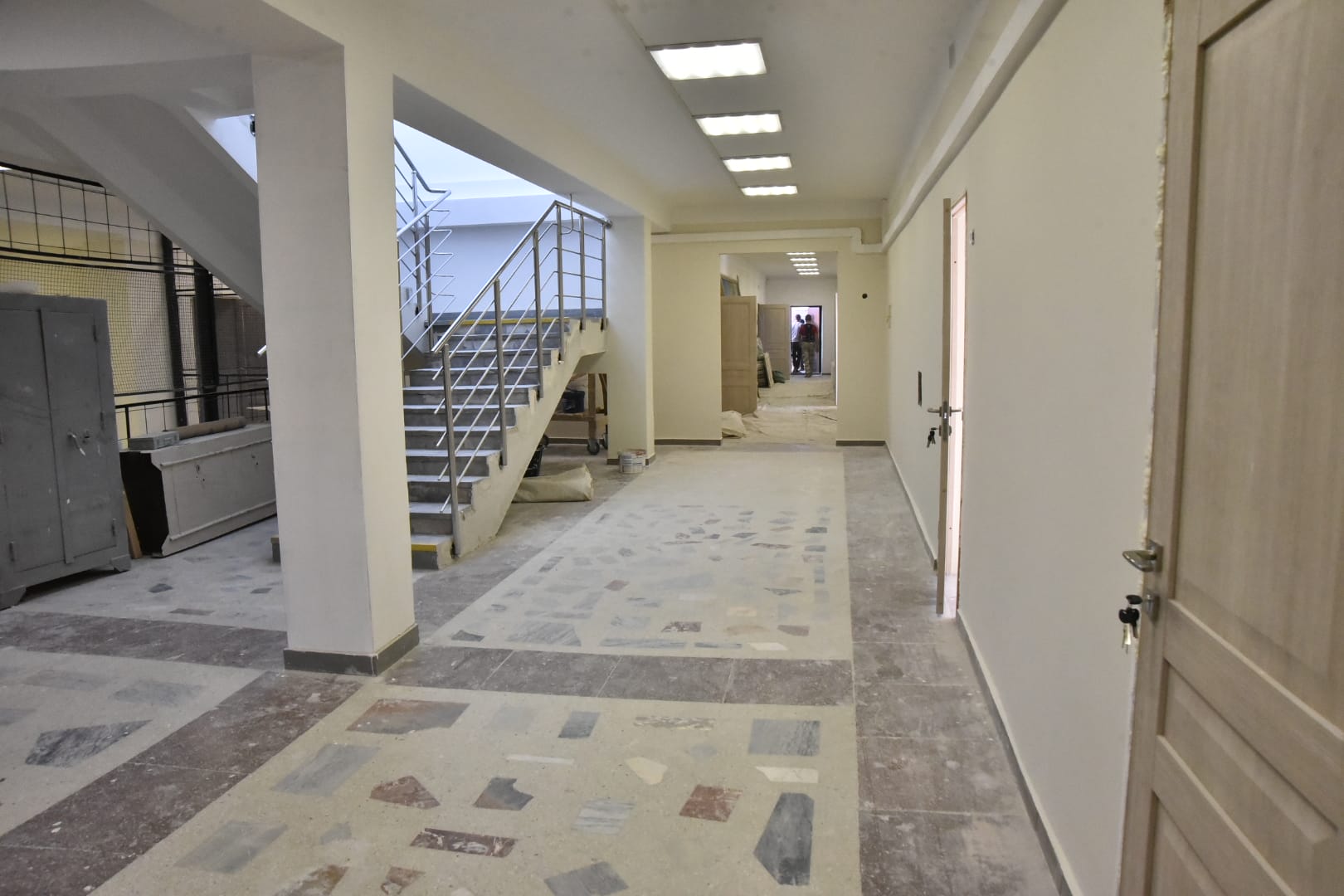 В рамках муниципального контракта проведен ремонт отмостки, тамбуров, крылец, лестниц, полов и потолков, систем отопления, для школьной столовой закуплено новое оборудование. Заменены двери, трубы холодного водоснабжения, проведены электромонтажные работы, полностью обновлена пожарная сигнализация.