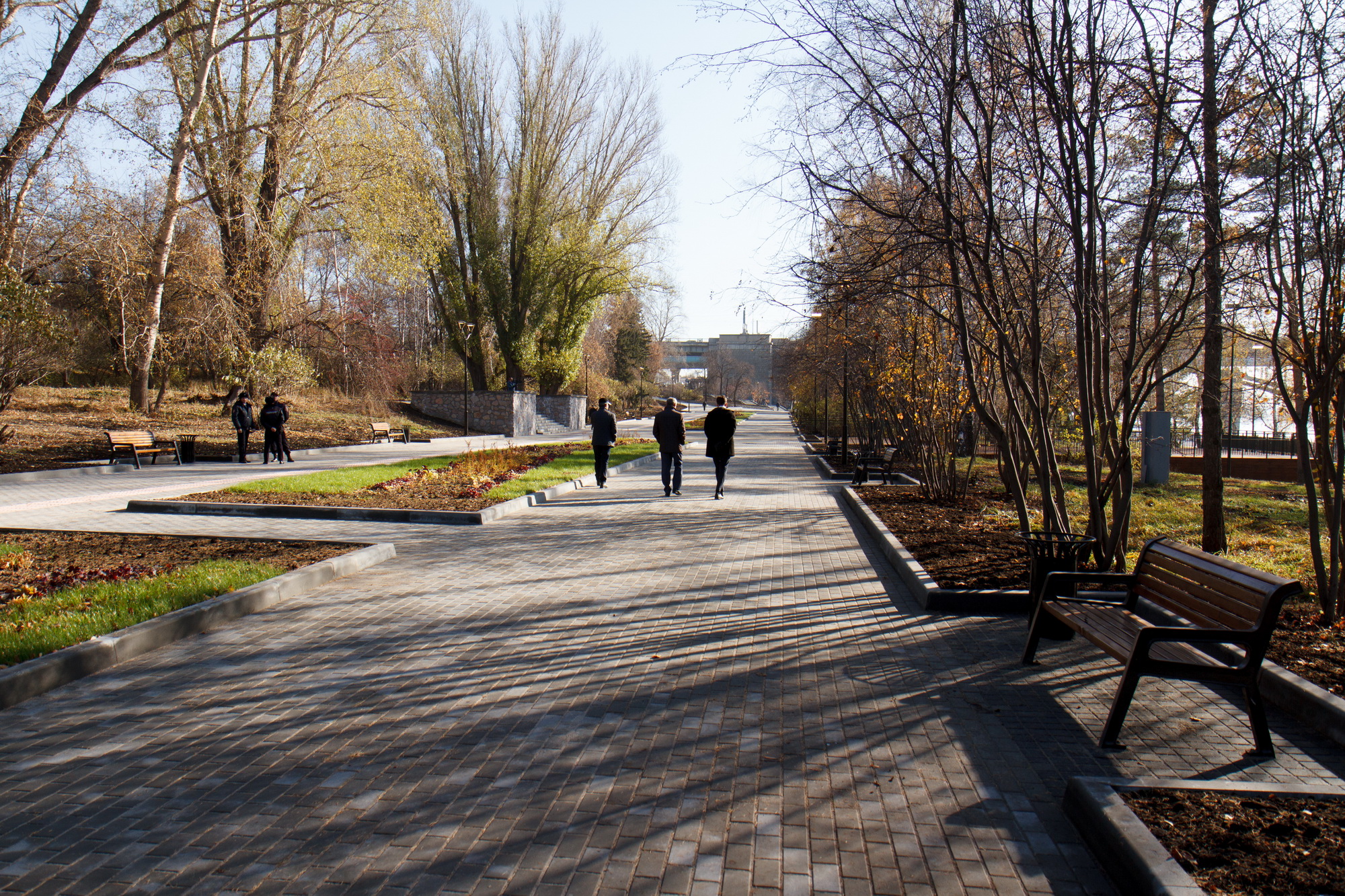 На левом берегу первый масштабный проект по благоустройству набережной он связан со строительством ледового дворца спорта и благоустройством всей прилегающей территории.