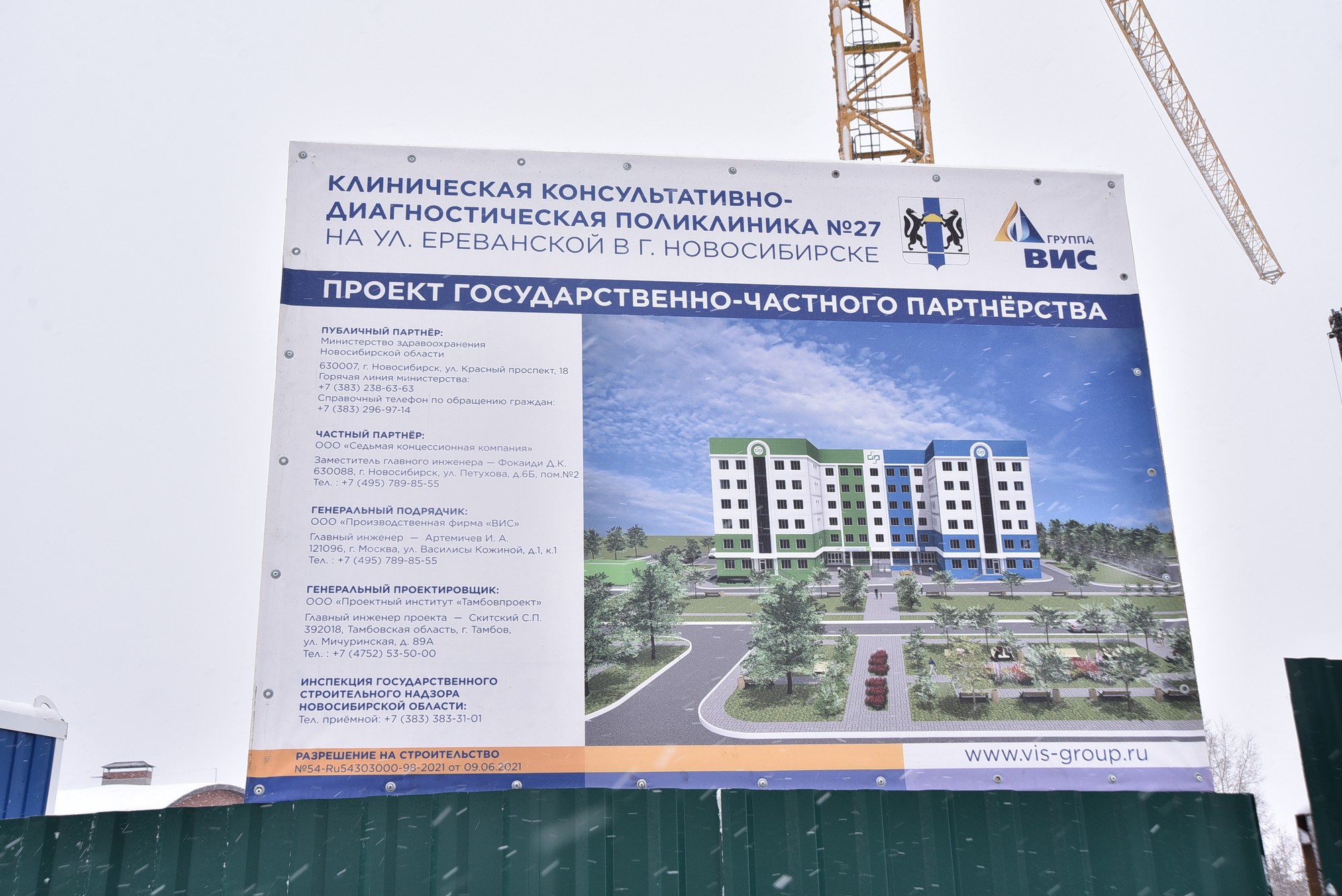 В новых быстро растущих районах Новосибирска появятся семь современных поликлиник. На площадках трёх из них – №27, №2 и №7 – уже полным ходом идёт строительство. Соблюдению графика этих работ – особое внимание со стороны региональных властей. Губернатор Андрей Травников провёл выездное совещание на стройплощадке поликлиники №27 на улице Ереванской.
