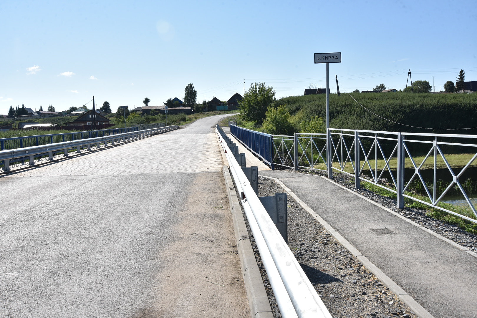 В с. Кирза произведён ремонт мостового полотна и подходов к мосту через реку Кирзушка. Подрядчик – ООО «МОСТ АЛТ». Работы на сумму 11 млн руб. произведены на средства областного бюджета с софинансированием из средств местного бюджета. Глава региона поблагодарил местные власти и представителей министерства транспорта и дорожного хозяйства региона за то, что они смогли снизить стоимость производства проектно-сметной документации и разработать типовое ПСД для малых мостов.