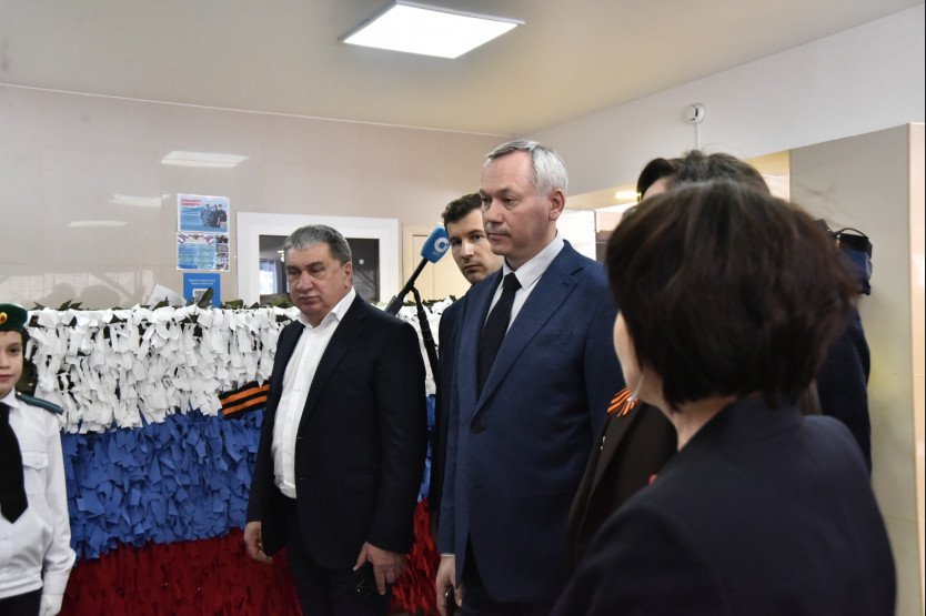 Губернатор Андрей Травников и Председатель Законодательного Собрания Новосибирской области Андрей Шимкив в рамках рабочей поездки в юго-западные районы области в Карасукском ДК осмотрели выставку волонтёрского движения «ZOV Карасук».