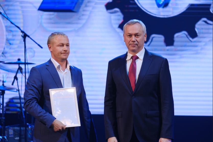 Генерального директора Научно-производственного объединения «ЭЛСИБ» Дмитрия Безмельницына Андрей Травников наградил за заслуги в развитии машиностроительной отрасли, многолетний добросовестный труд Почётной грамотой Губернатора Новосибирской области.