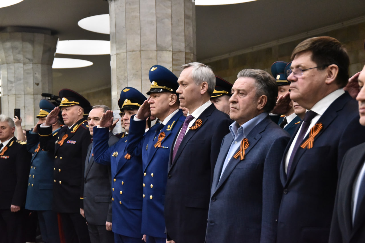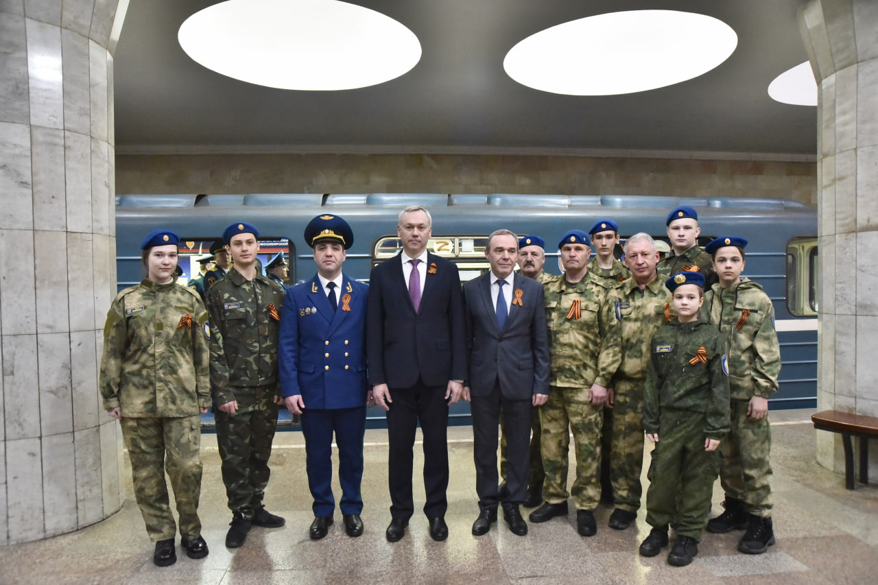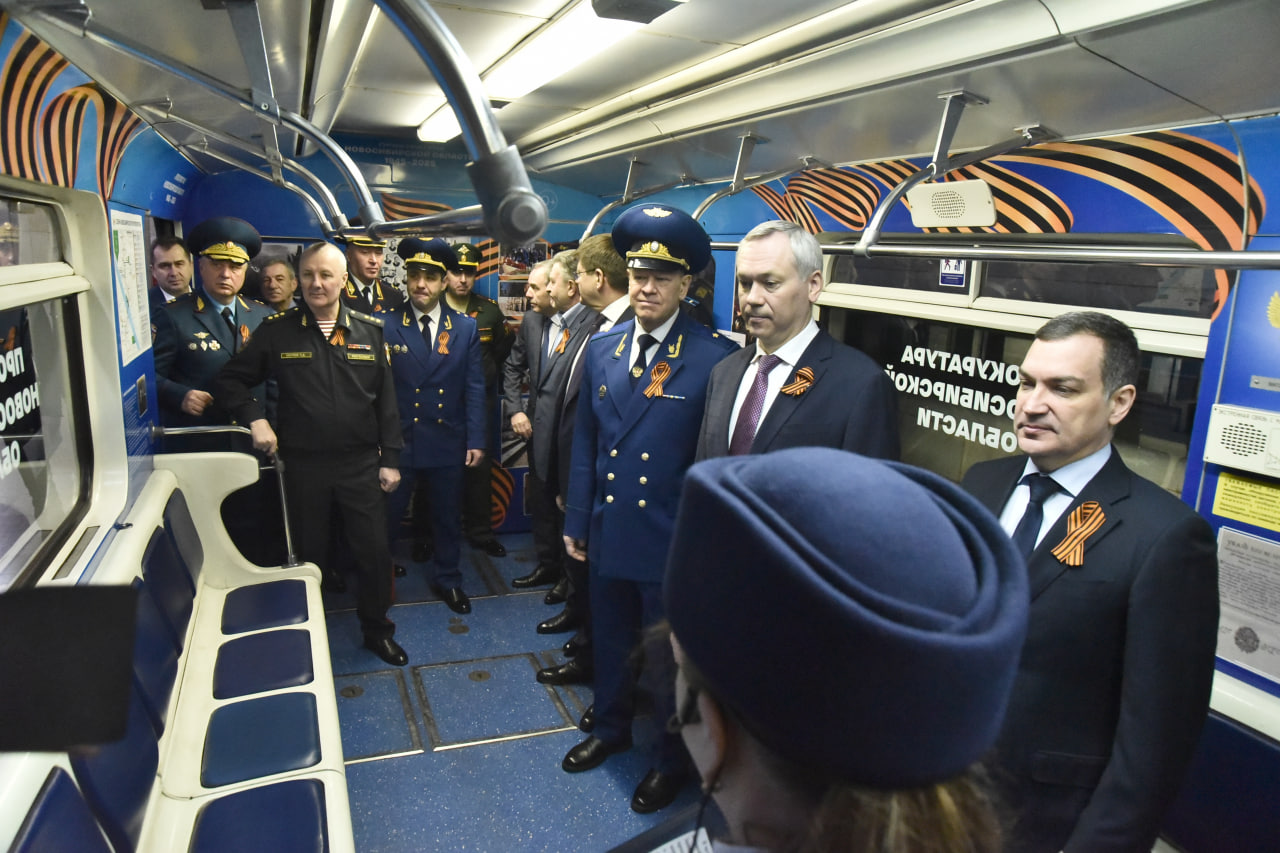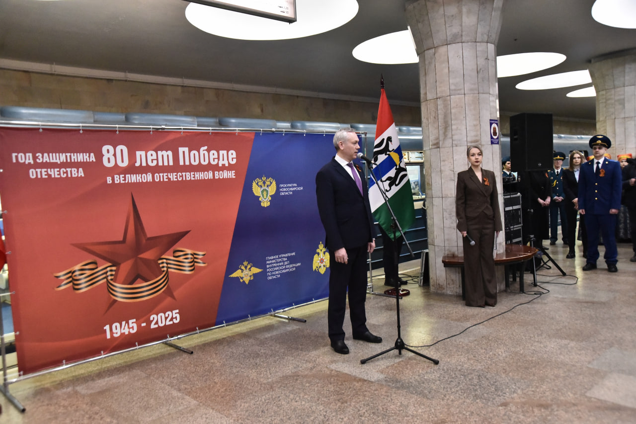 Губернатор Андрей Травников принял участие в торжественном открытии экспозиции в метровагонах, посвящённой 80-летию Победы в Великой Отечественной войне.