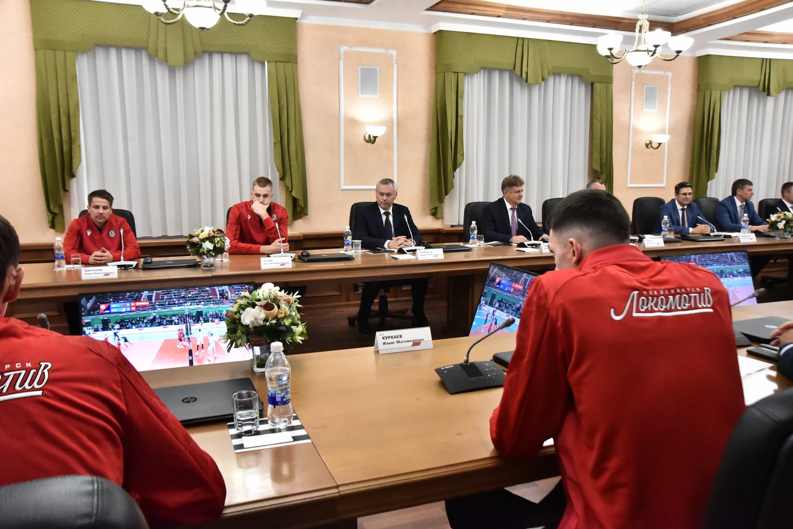 Во встрече приняли участие начальник Западно-Сибирской железной дороги Александр Грицай и генеральный директор волейбольного клуба «Локомотив-Новосибирск» Роман Станиславов, главный тренер «Локомотива» Пламен Константинов и капитан команды Павел Круглов.