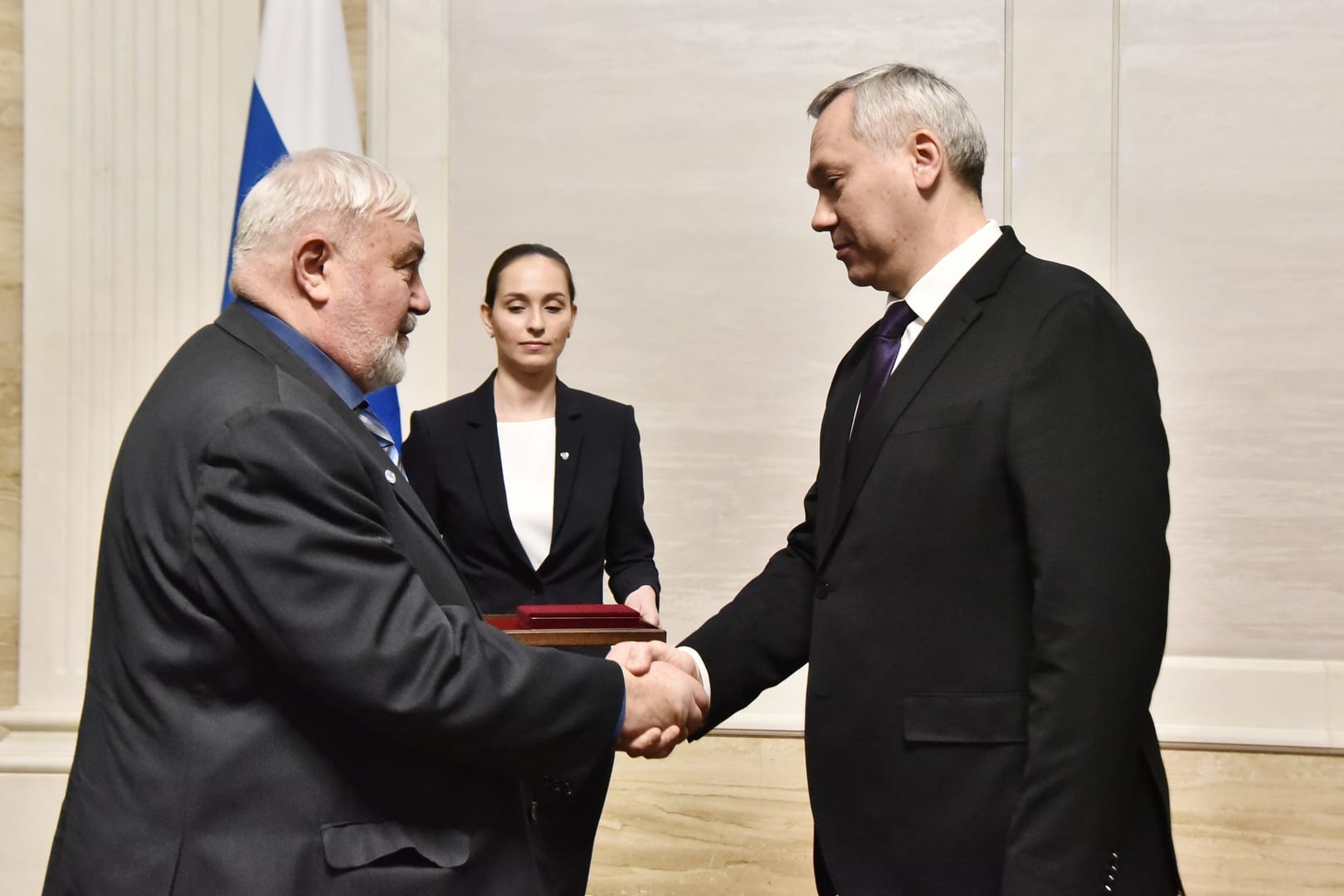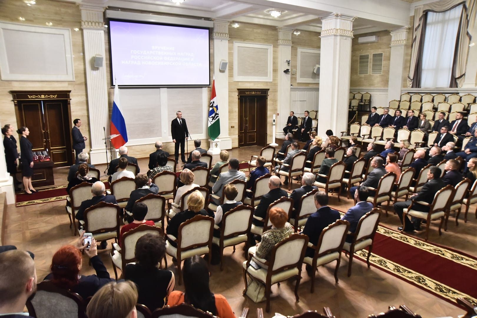 Губернатор Андрей Травников и Председатель Законодательного Собрания Новосибирской области Андрей Шимкив вручили выдающимся землякам государственные награды и награды Новосибирской области. Церемония прошла в Правительстве региона 12 декабря, в День Конституции Российской Федерации.