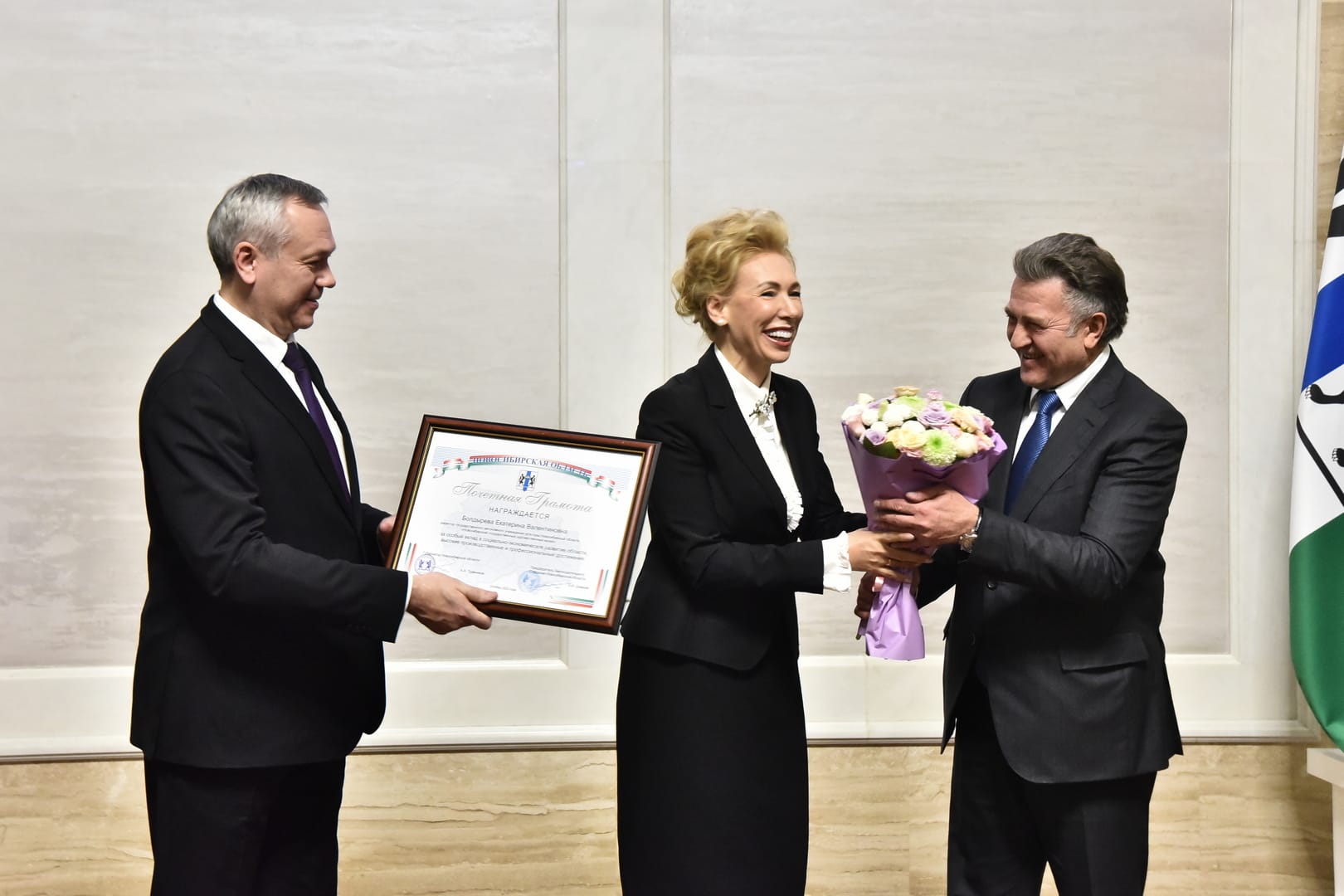 За выдающиеся достижения, направленные на обеспечение развития Новосибирской области в сфере экономики, культуры, искусства, а также за благотворительную и общественную деятельность знаком отличия «За заслуги перед Новосибирской областью» награждены ветеран труда, кандидат экономических наук Виктор Воронов и директор – художественный руководитель Новосибирского музыкального театра, заслуженный артист Российской Федерации Леонид Кипнис.