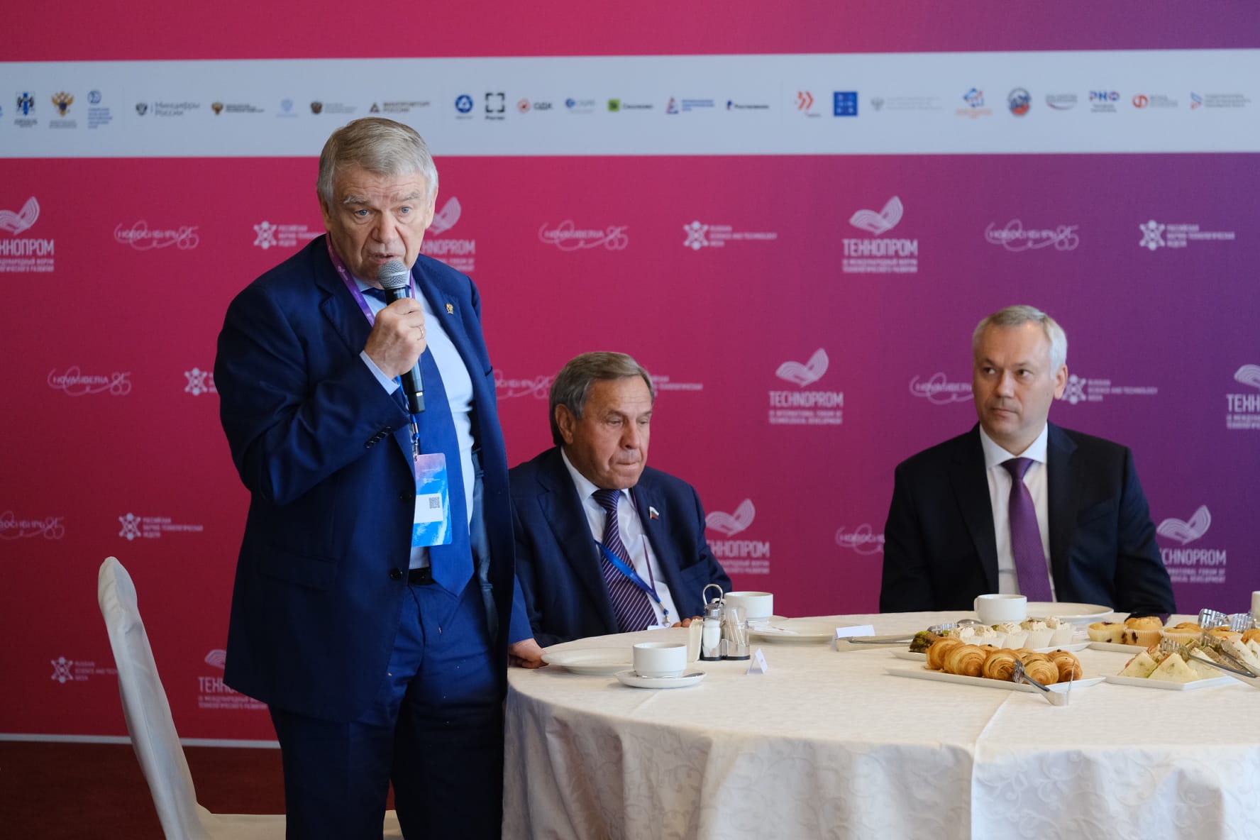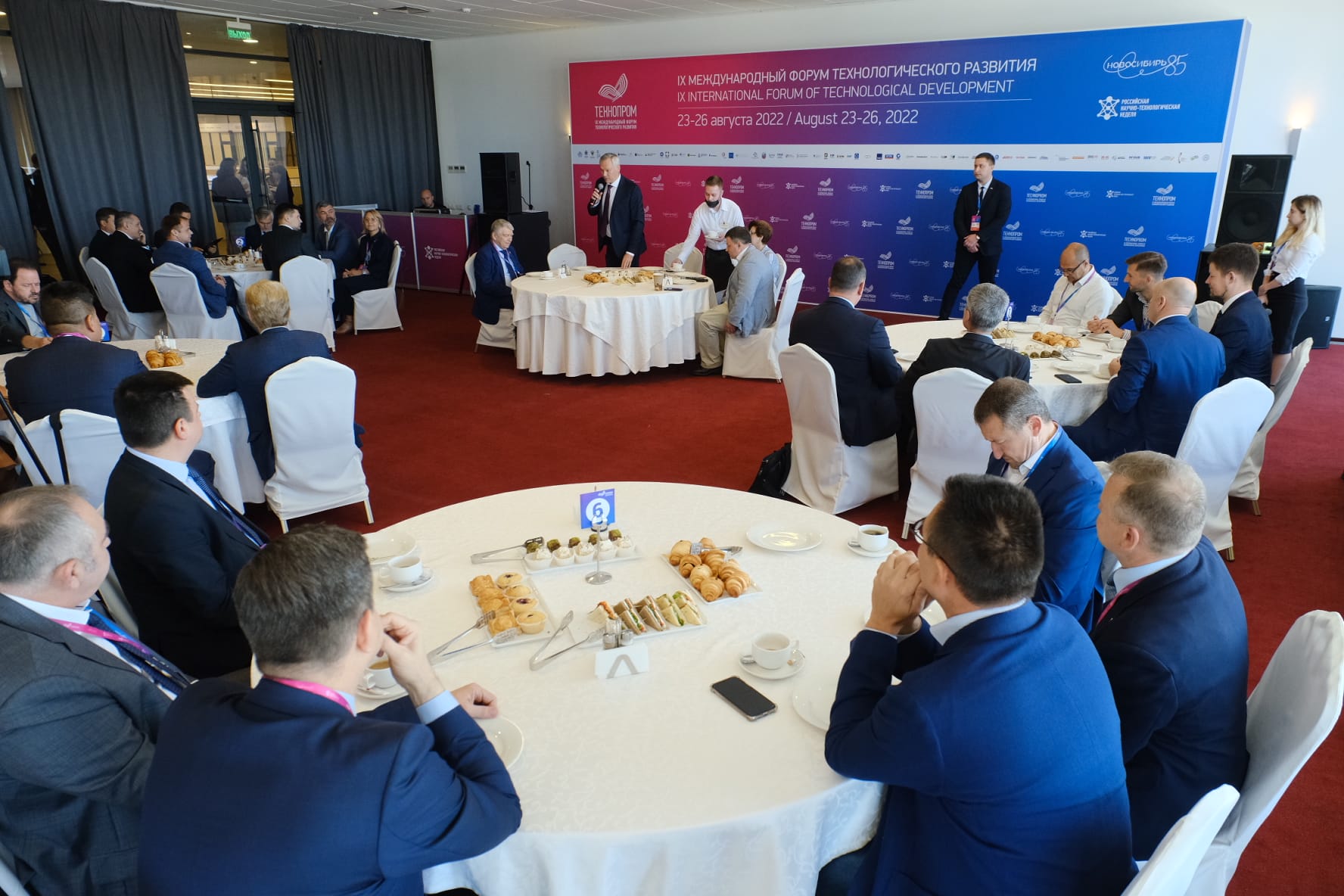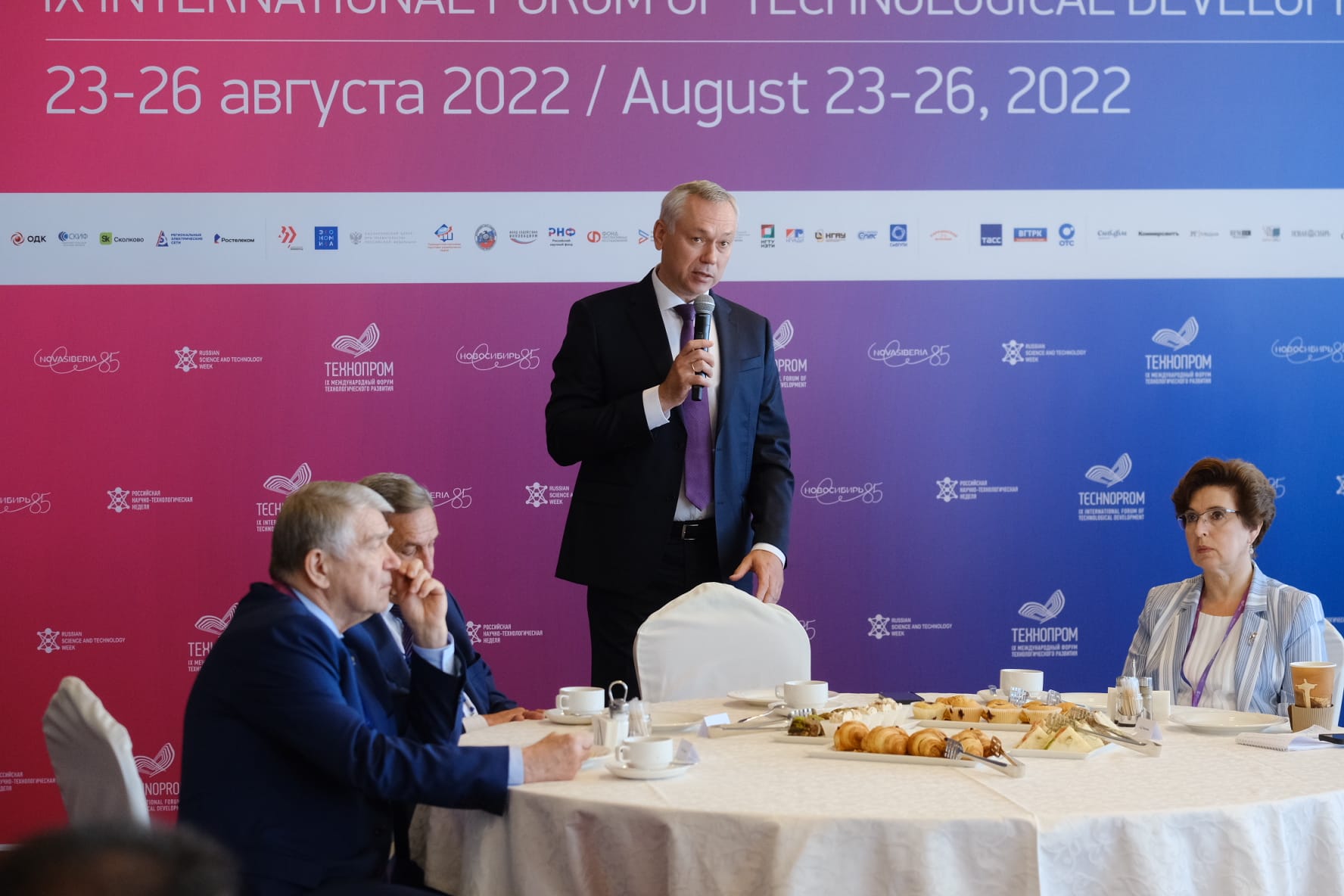 Губернатор Новосибирской области на старте второго дня «Технопрома-2022» провёл деловой завтрак на тему «Технологический суверенитет России: механизмы и инструменты». В рамках мероприятия участники обсудили вопрос: что мешает достижению технологического лидерства и обретению технологического суверенитета России?