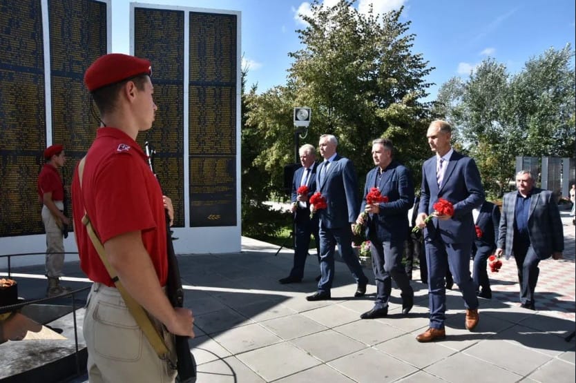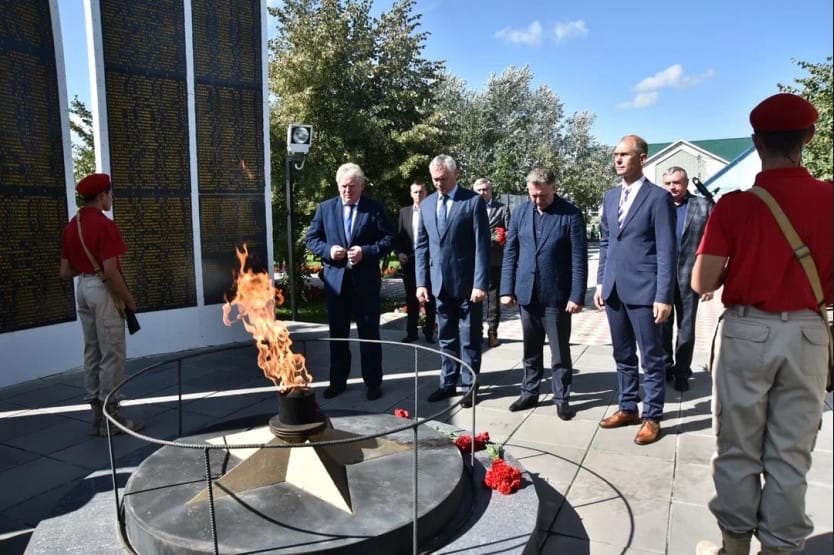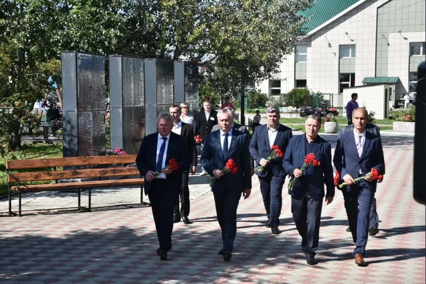 После встречи Андрей Травников и Андрей Шимкив в селе Убинское возложили цветы к Монументу славы.
