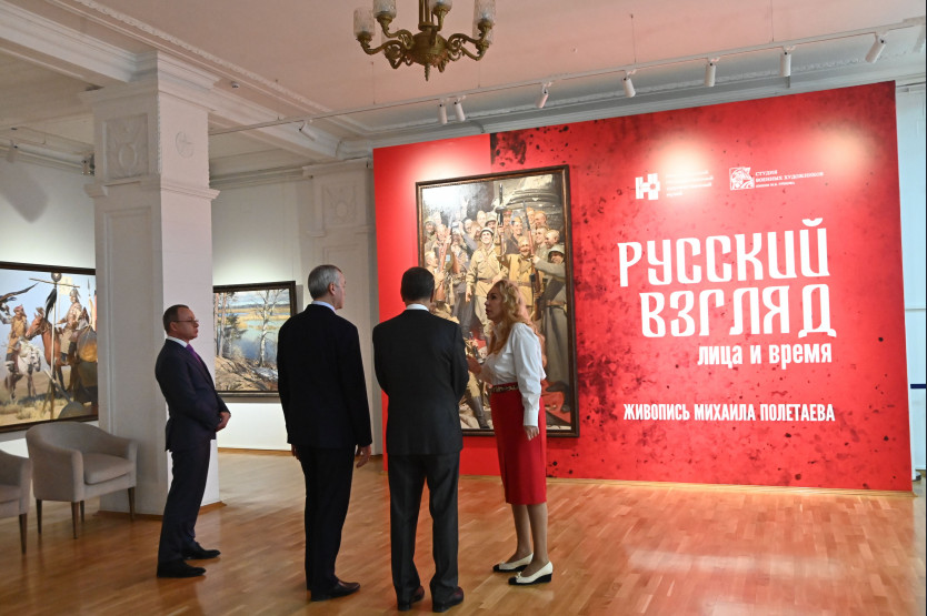 Что касается выставки Михаила Полетаева: я раньше тоже не был знаком с творчеством этого художника. Замечательные картины. Посвящённые войне и написанные сегодня. Но такое впечатление, что художник сам пережил эти события. Замечательные портреты наших современников, прекрасные пейзажи», – подчеркнул Александр Жуков.