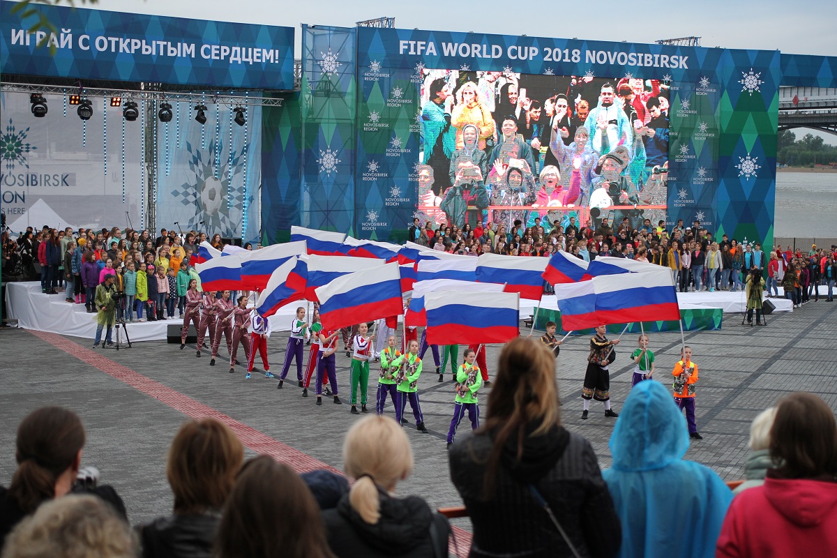 В Новосибирске в день открытия XXI Чемпионата мира по футболу FIFA на Михайловской набережной собрались пять тысяч новосибирцев, чтобы просмотреть матч национальной сборной.