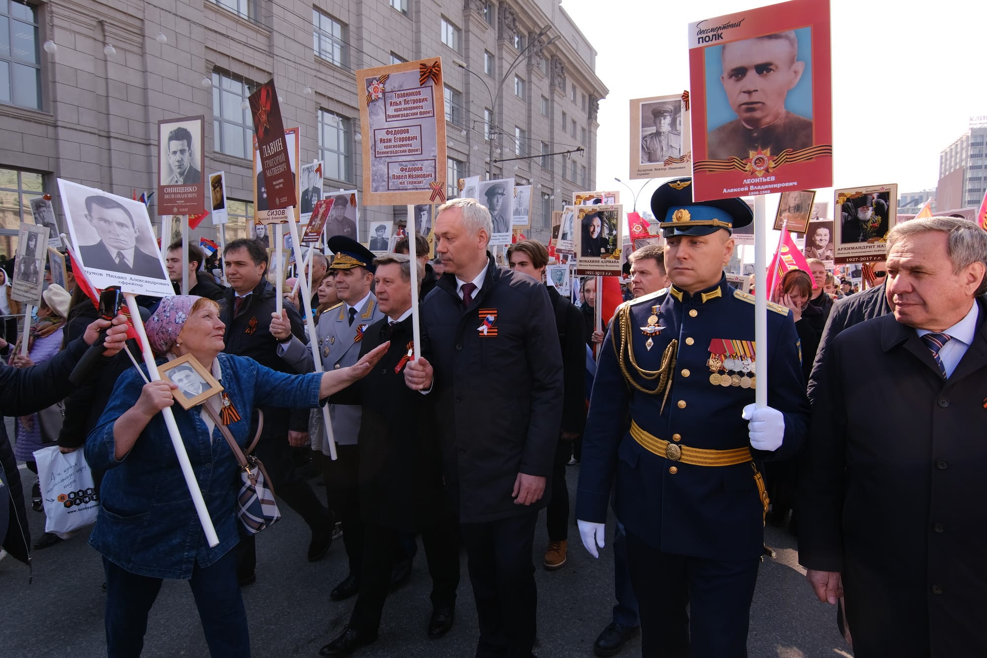 Андрей Травников вместе с новосибирцами в День Победы прошёл в колонне Бессмертного полка