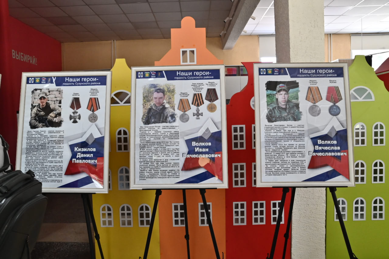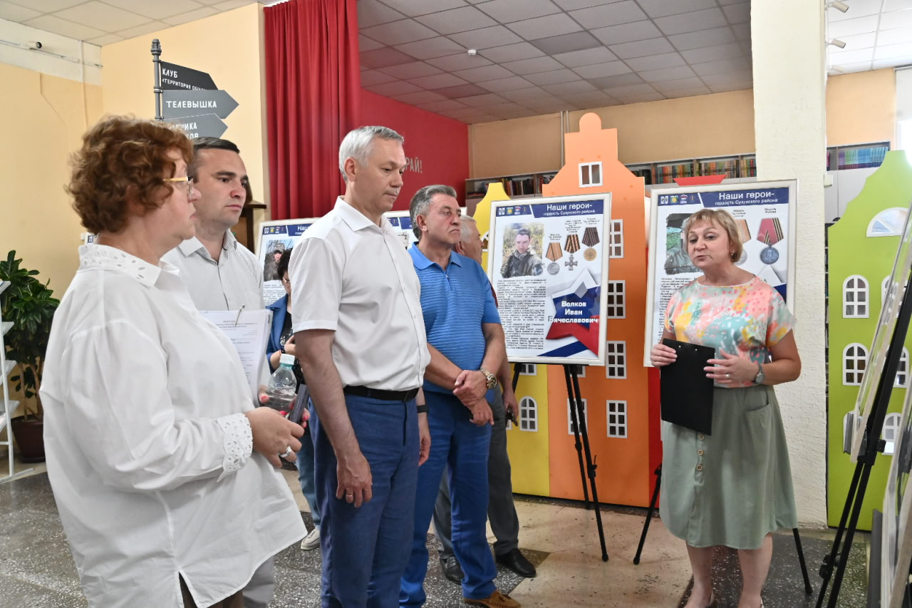 Перед встречей Губернатор Андрей Травников посетил выставку, посвящённую героям СВО из Сузунского района.
