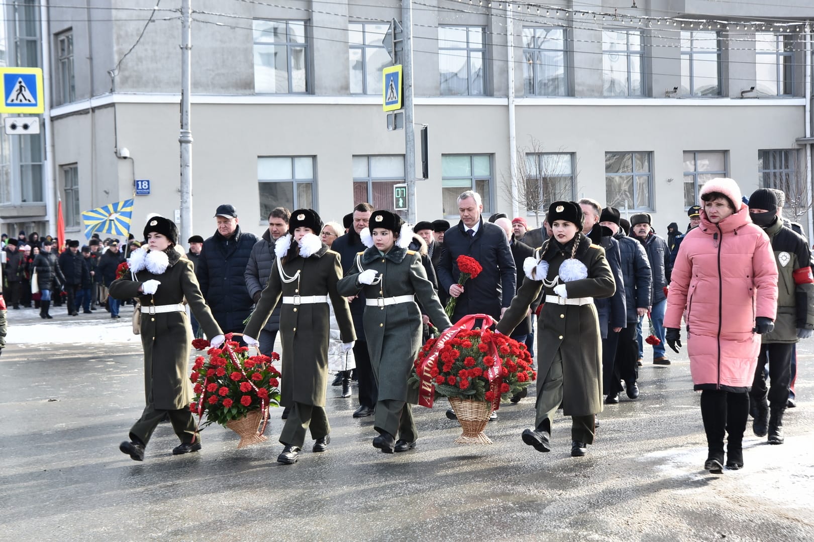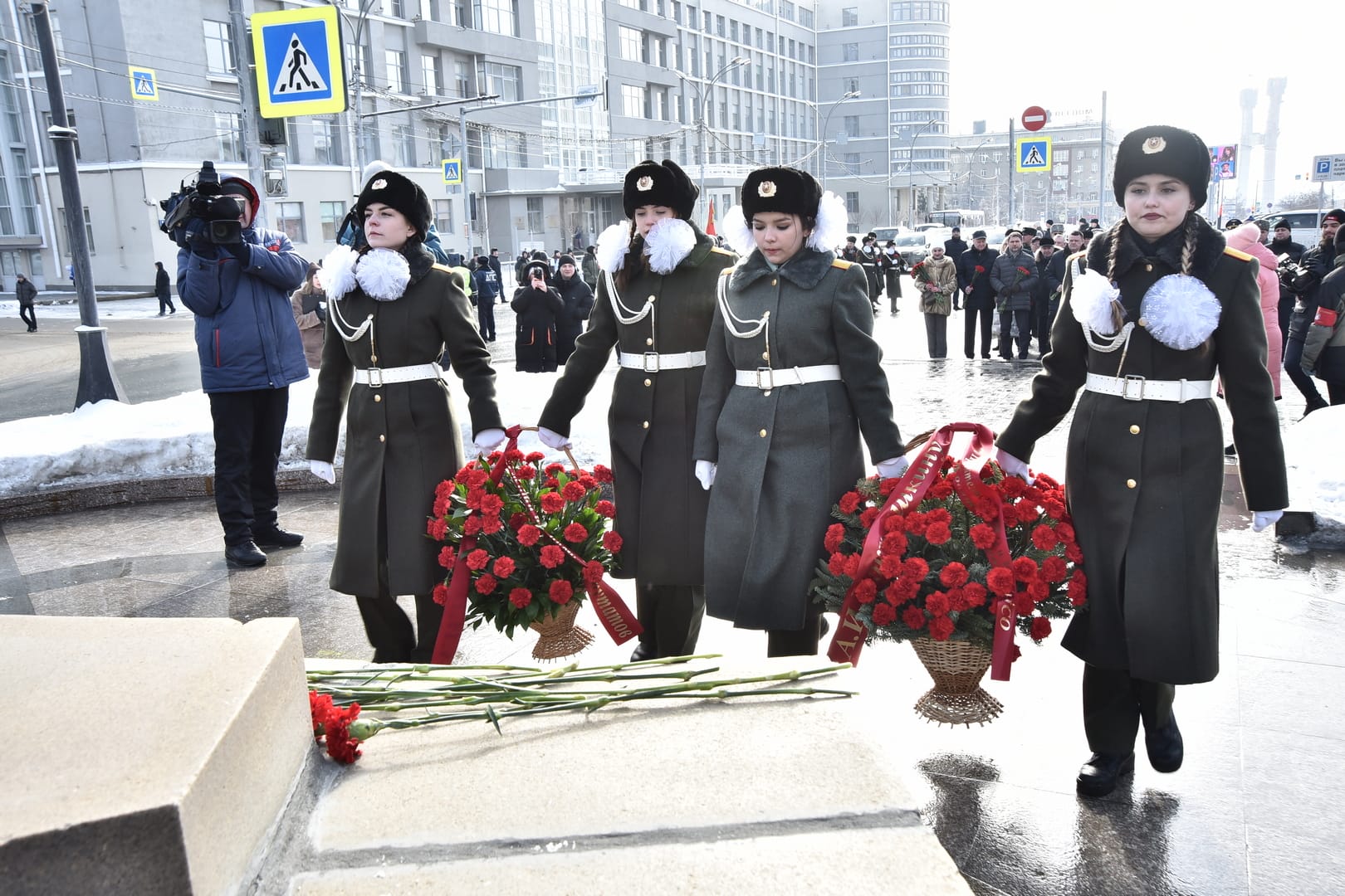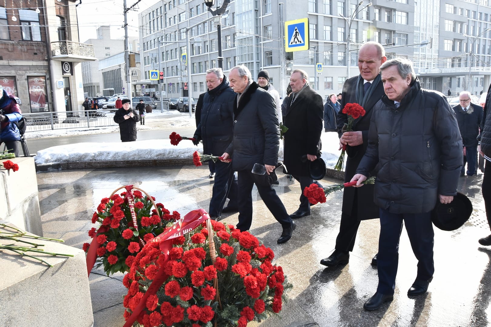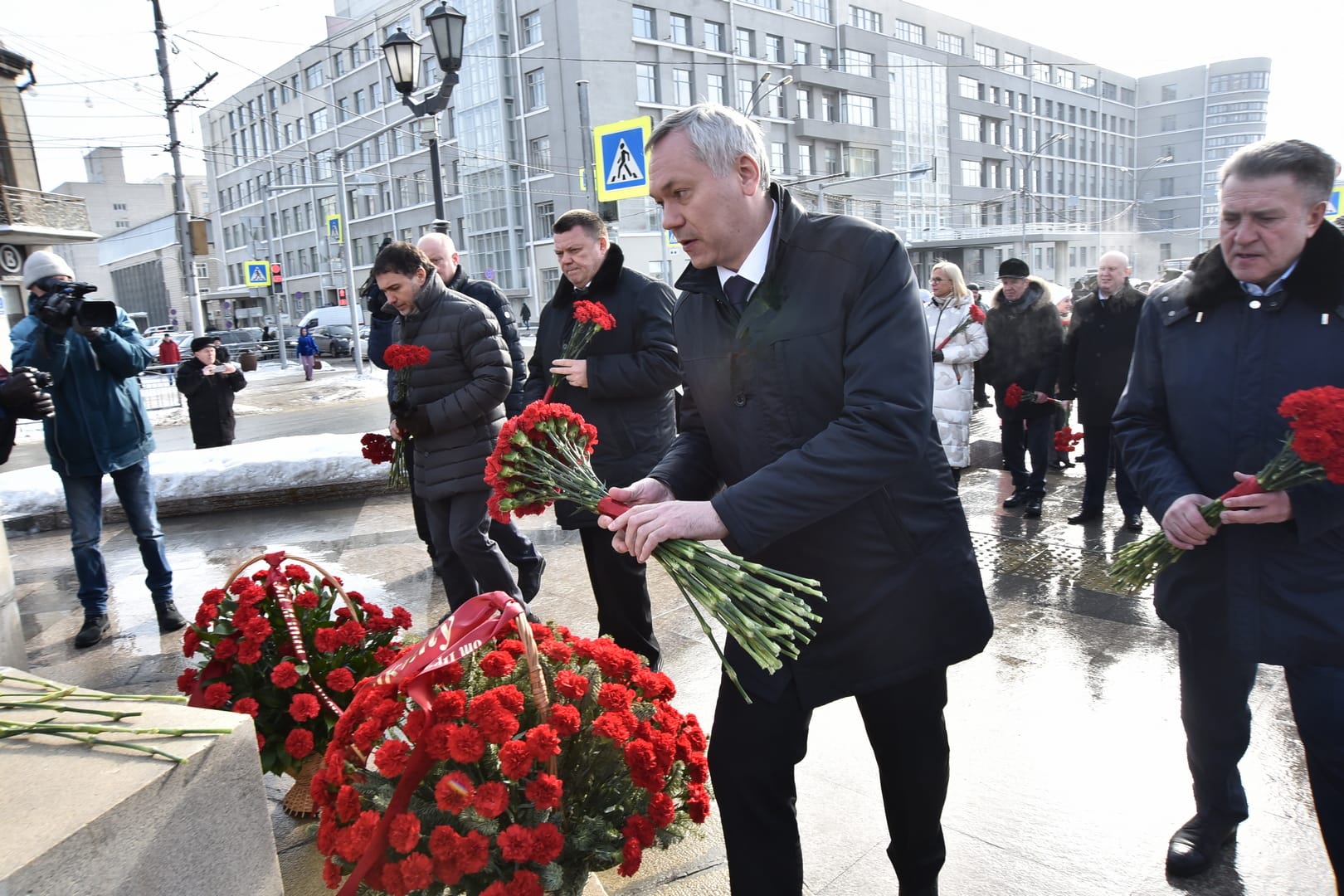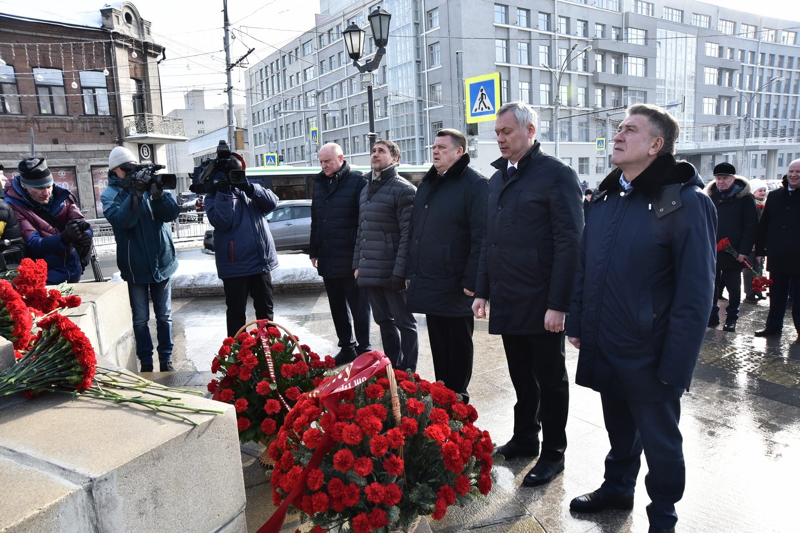 Губернатор Андрей Травников, Председатель Законодательного Собрания Новосибирской области Андрей Шимкив, сенаторы Совета Федерации ФС РФ Александр Карелин и Владимир Городецкий и другие официальные лица приняли участие в церемонии возложения венков и цветов к бюсту первого в истории трижды Героя Советского Союза, Маршала авиации, уроженца Новониколаевска-Новосибирска Александра Ивановича Покрышкина.