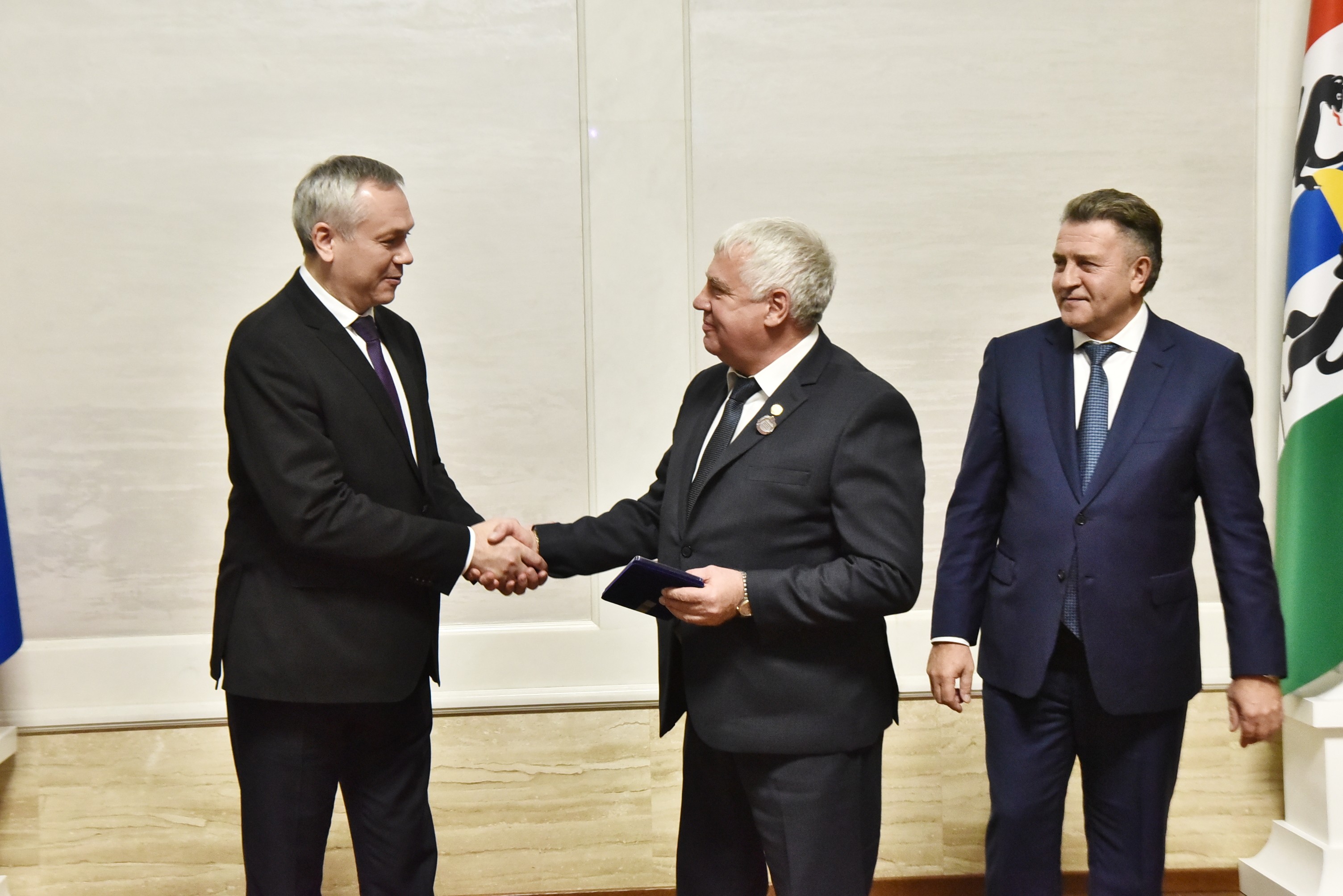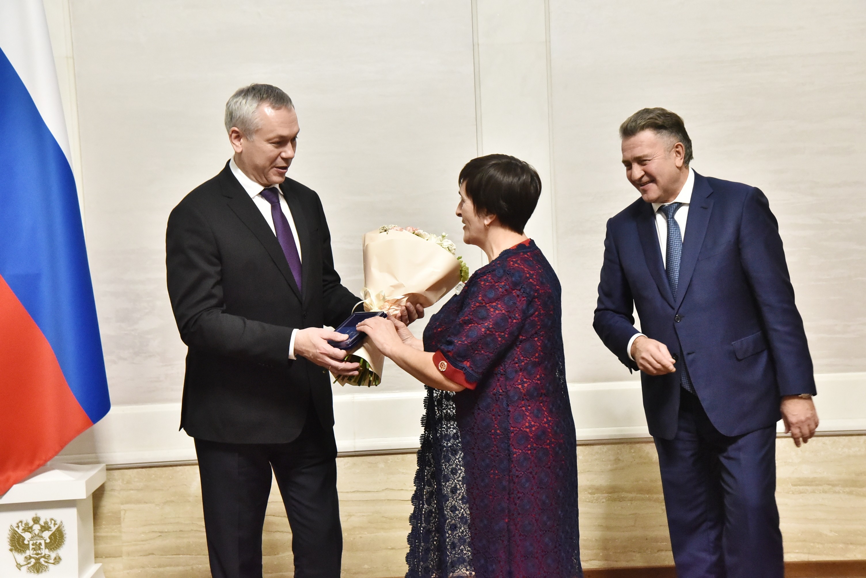 Государственные награды Российской Федерации и награды Новосибирской области вручили полномочный представитель президента Российской Федерации в Сибирском федеральном округе Анатолий Серышев, губернатор Новосибирской области Андрей Травников и председатель Законодательного Собрания региона Андрей Шимкив.