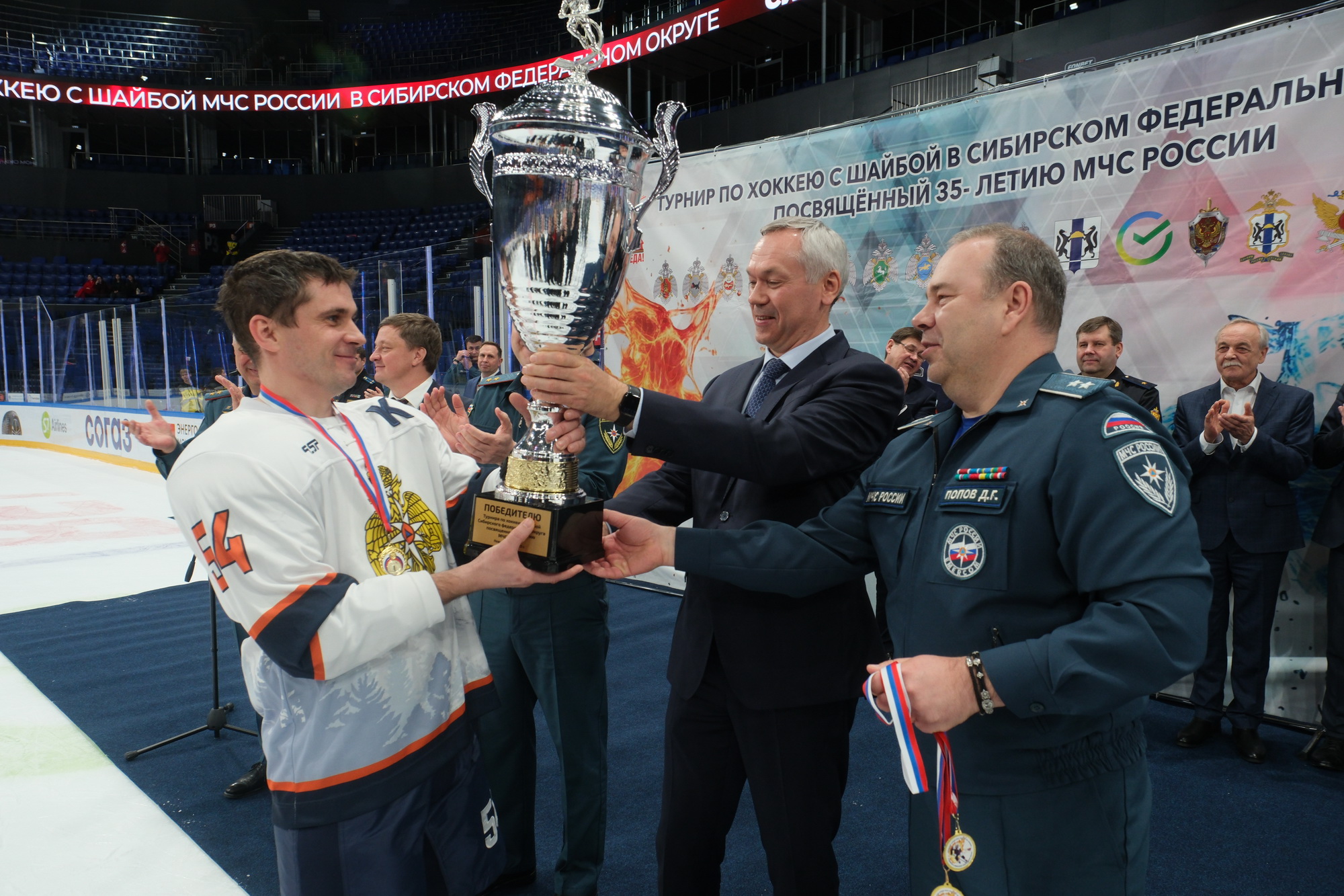 Андрей Травников вручил кубок и медали победителям хоккейных состязаний турнира МЧС