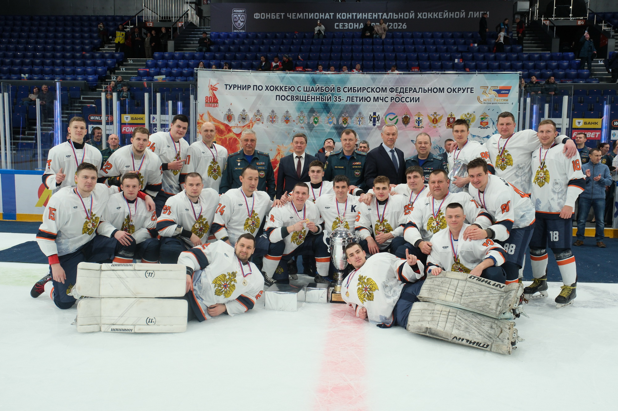 Финальные матчи турнира, приуроченного к 35-летию создания МЧС России и Дню спасателя, прошли на ледовой «Сибирь-Арене».