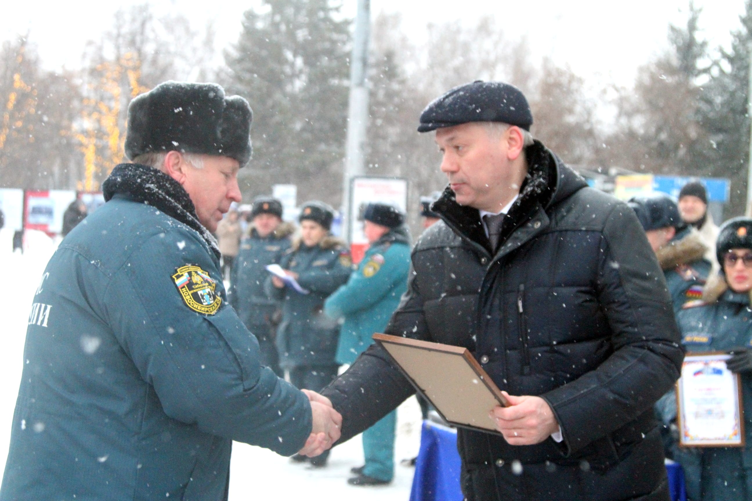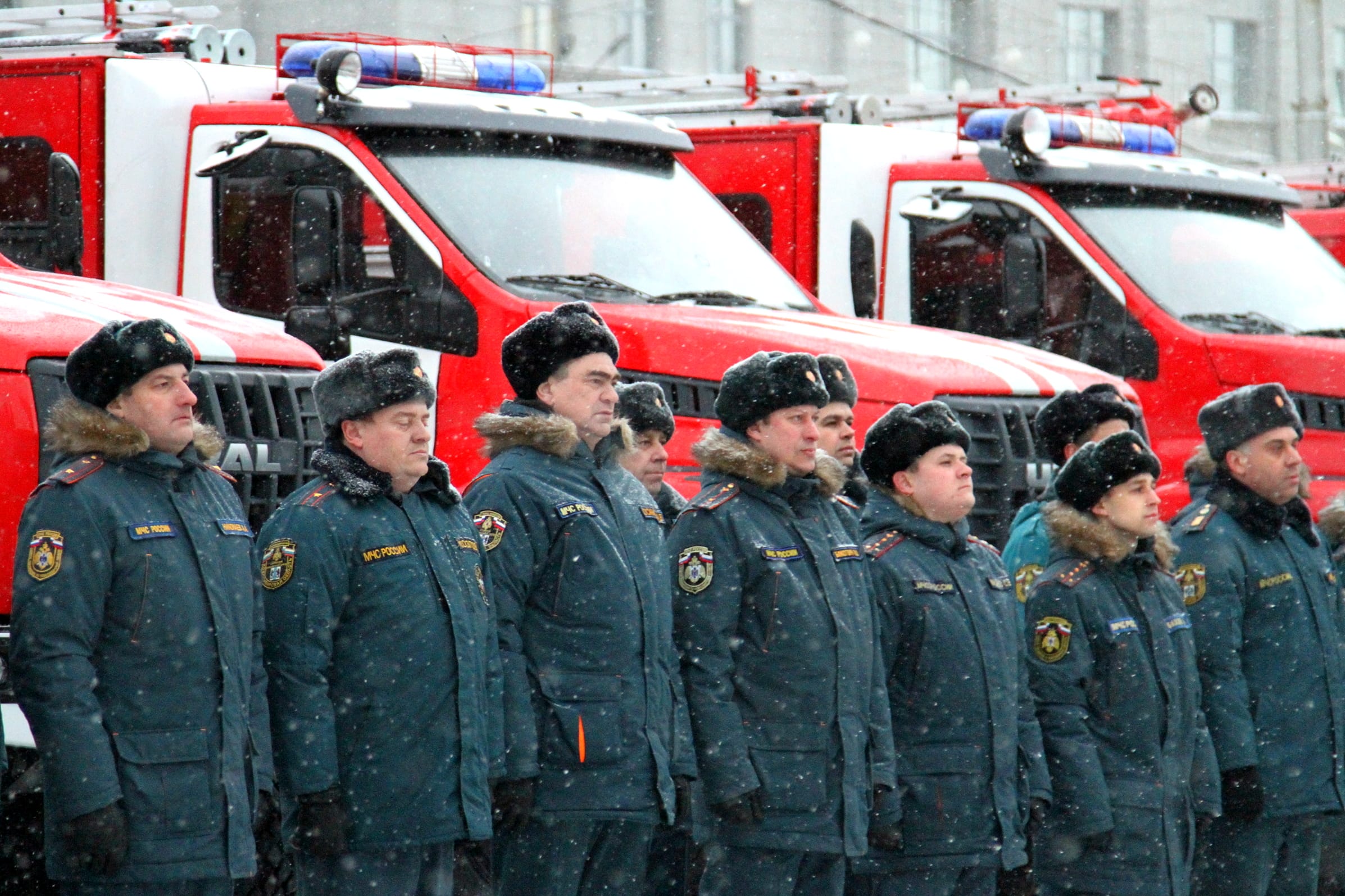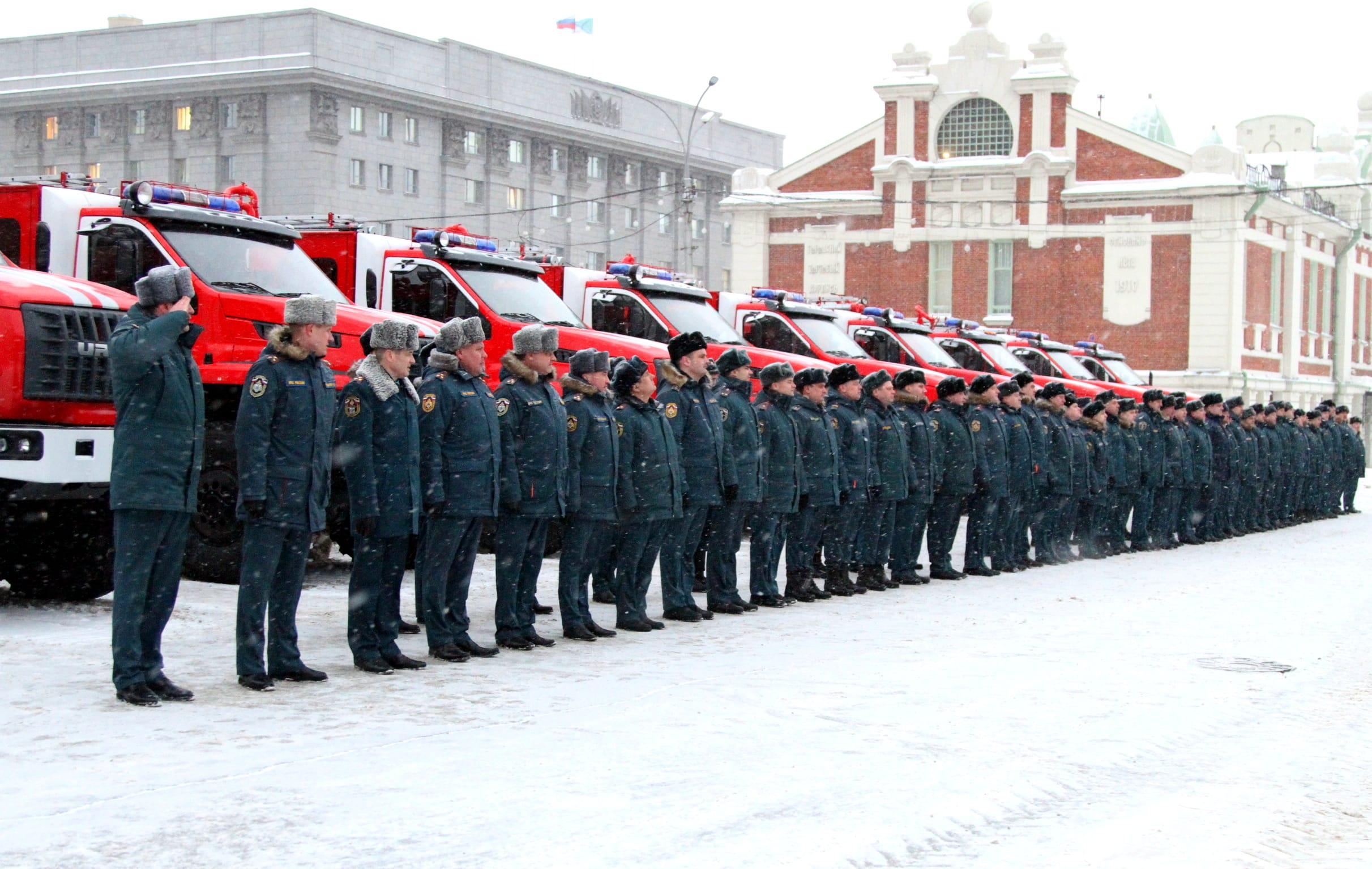 Андрей Травников, а также начальник ГУ МЧС России по Новосибирской области, генерал-лейтенант внутренней службы Виктор Орлов и другие официальные лица вручили руководителям подразделений МЧС сертификаты на получение техники. Всего спасателям переданы 24 новых пожарно-спасательных автомобиля.