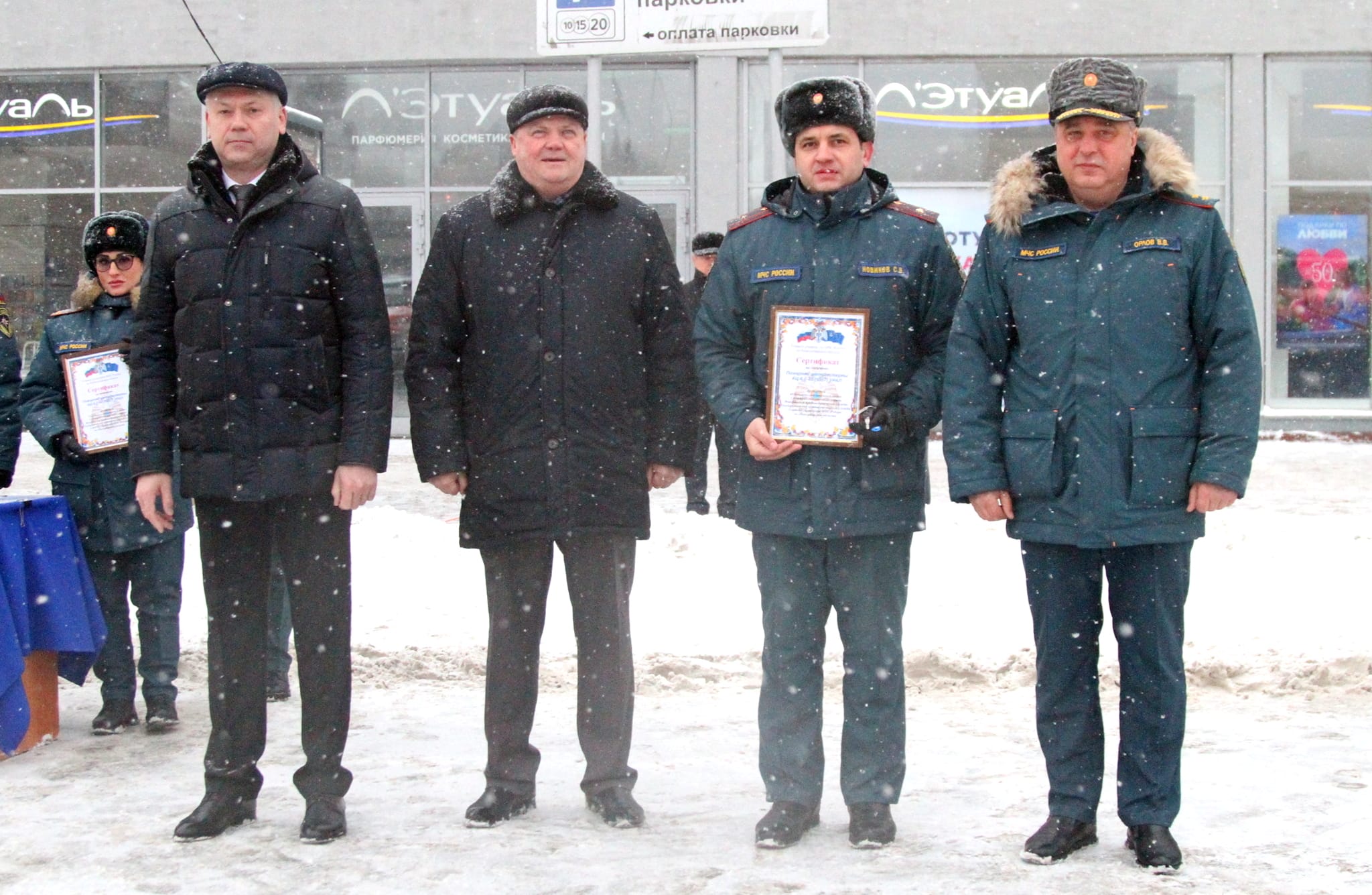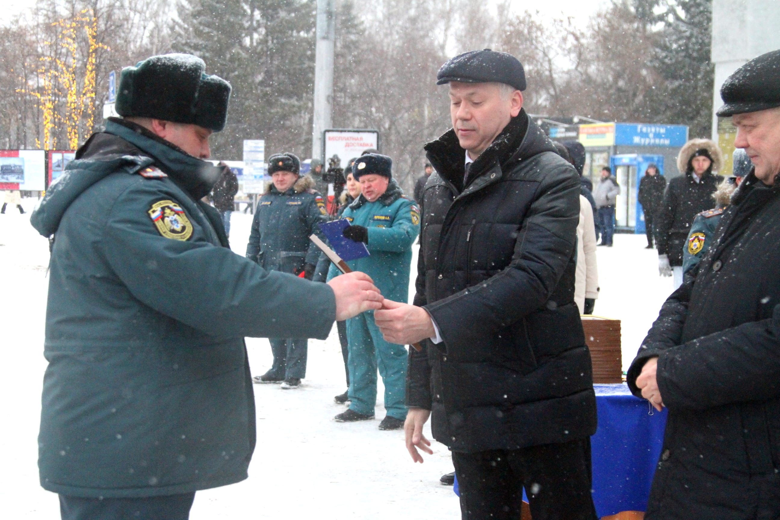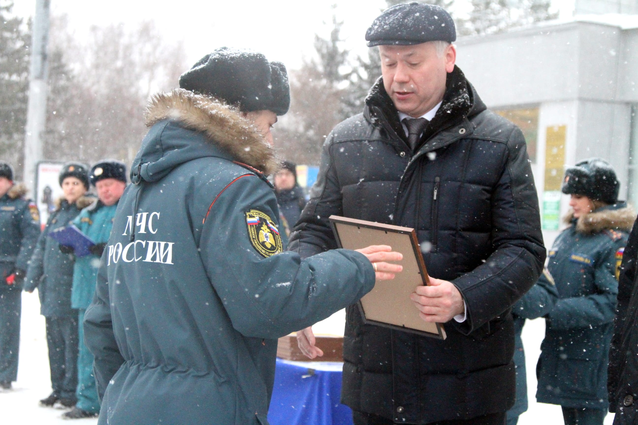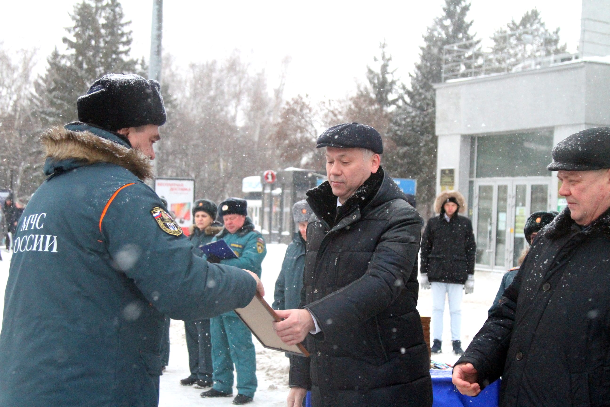Андрей Травников, а также начальник ГУ МЧС России по Новосибирской области, генерал-лейтенант внутренней службы Виктор Орлов и другие официальные лица вручили руководителям подразделений МЧС сертификаты на получение техники. Всего спасателям переданы 24 новых пожарно-спасательных автомобиля.
