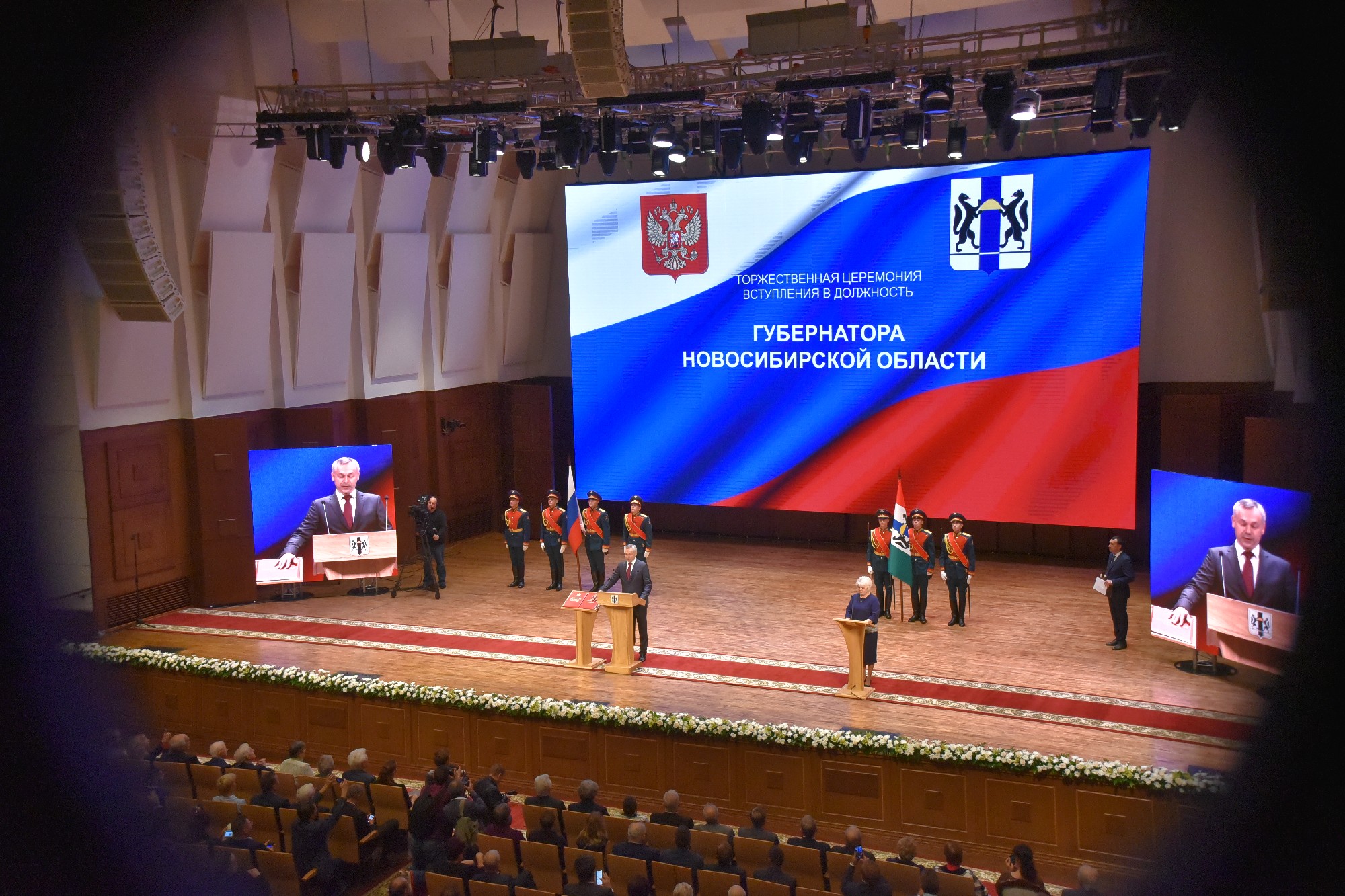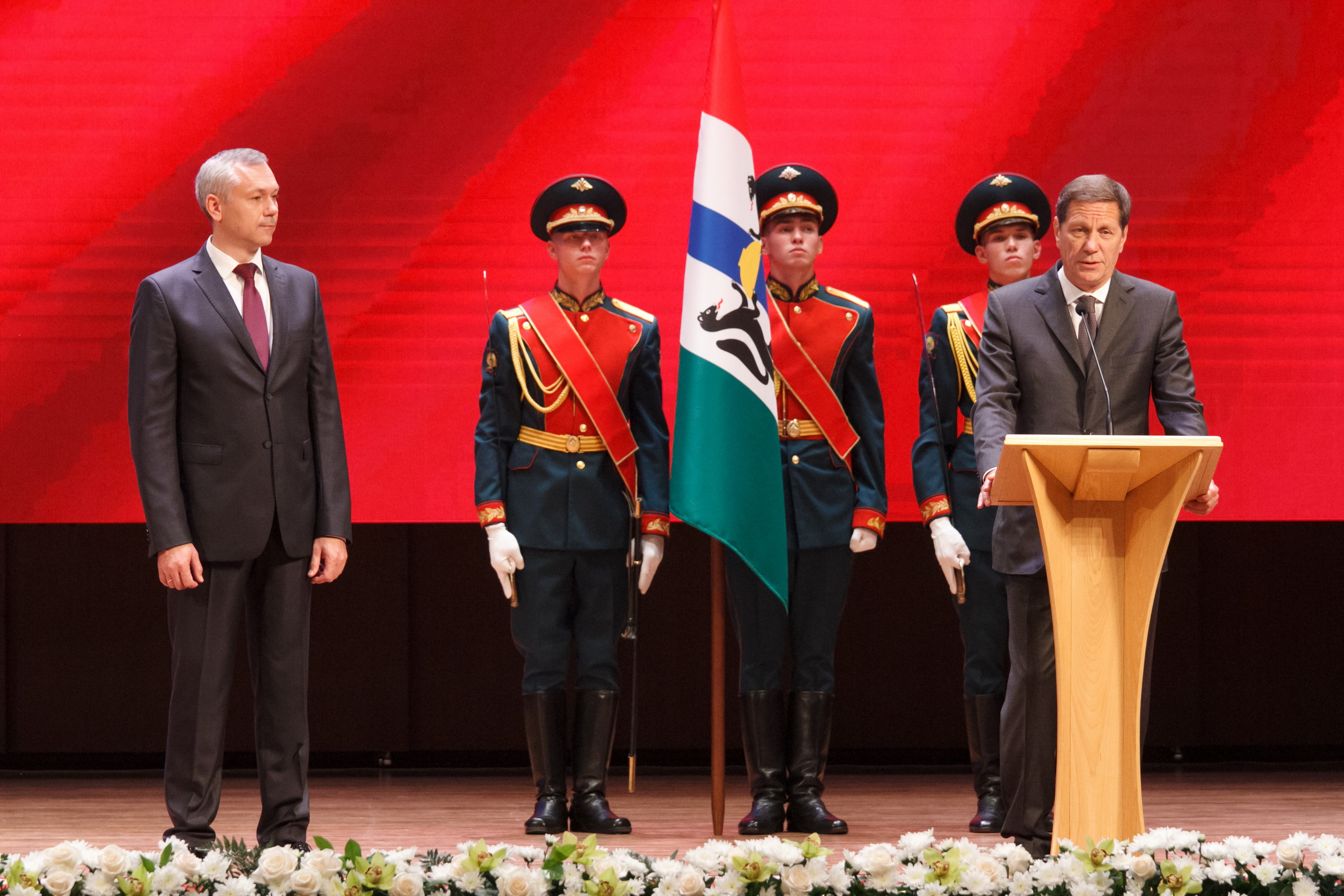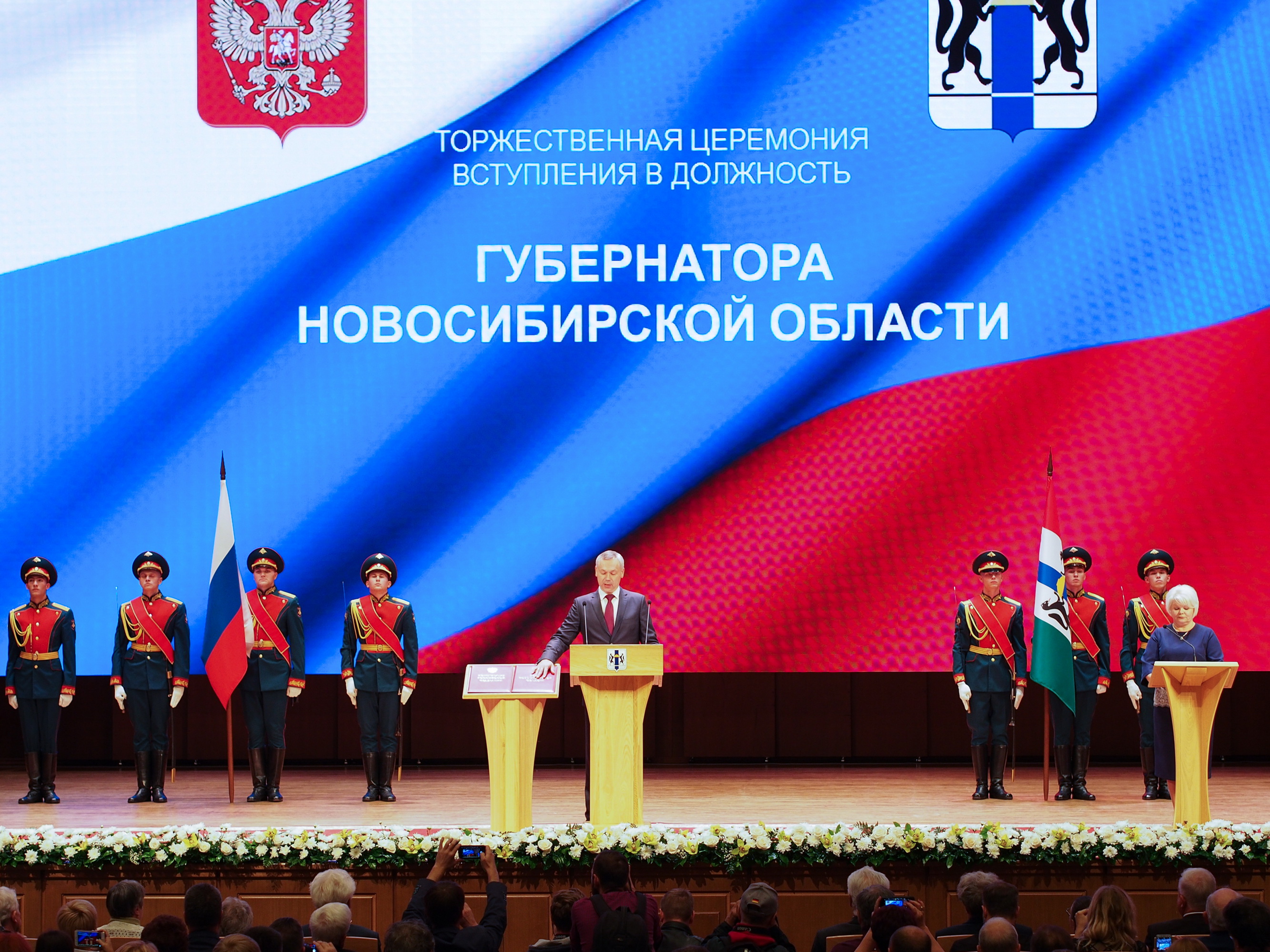 Андрей Травников избран на должность губернатора Новосибирской области по результатам выборов, которые прошли 9 сентября. За действующего главу области отдали голоса 64,52 процента избирателей, принявших участие в голосовании. Центральным событием церемонии стало принесение Андреем Травниковым присяги на верность народу и Конституции Российской Федерации, Уставу Новосибирской области.