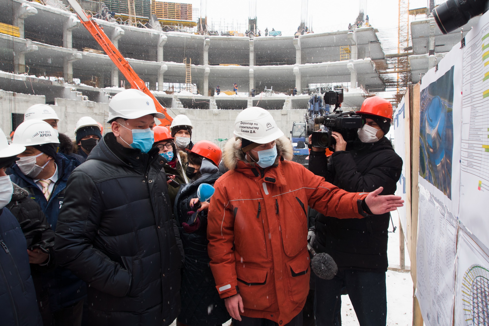 Год назад – 7 февраля — на площадке строительства новой ледовой арены в Новосибирске была установлена тысячная свая. Сегодня уже проводятся бетонные работы на уровне верхнего этажа здания — на высоте 32 метра (общая высота объекта — 38,2 метра). Губернатор Андрей Травников провёл выездное совещание на площадке строительства многофункциональной ледовой арены на улице Немировича-Данченко в Новосибирске.