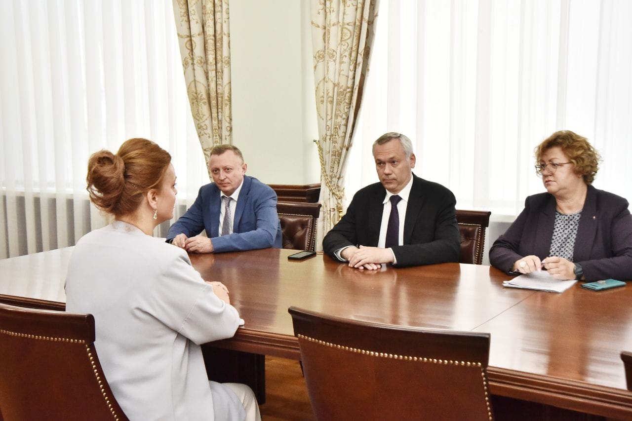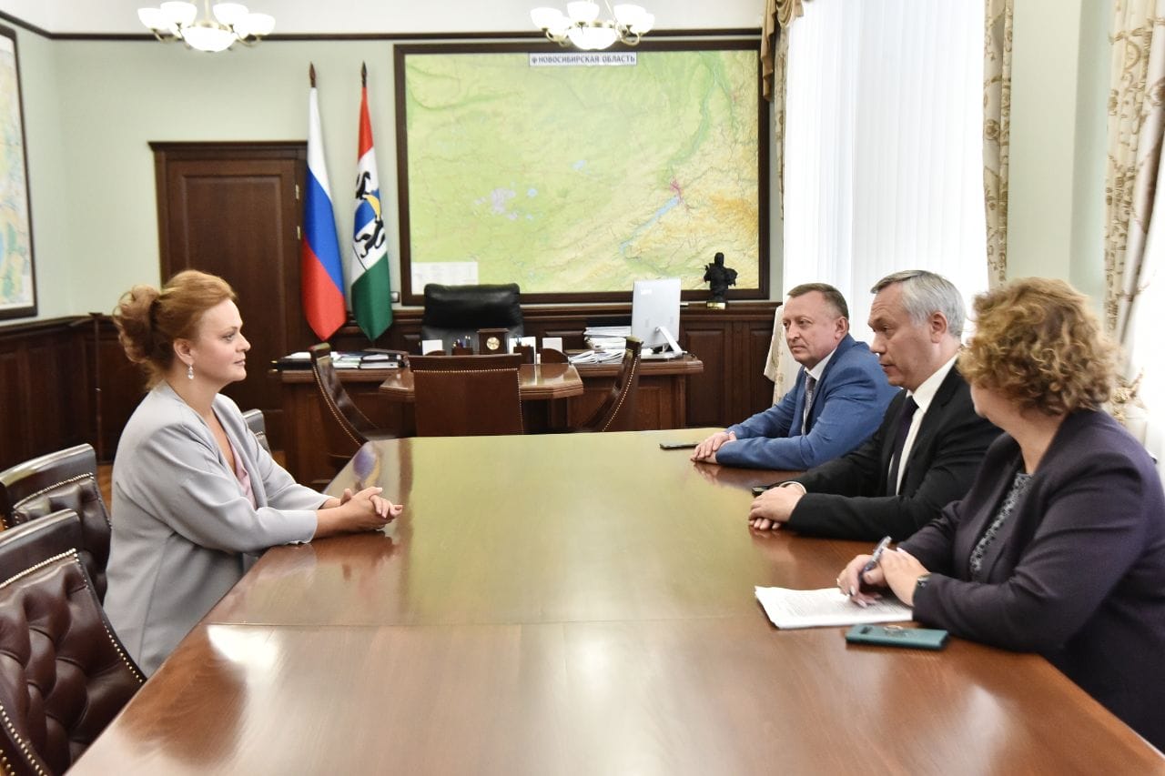 Губернатор Андрей Травников и председатель фонда «Защитники Отечества» Анна Цивилева провели рабочую встречу в Правительстве Новосибирской области.