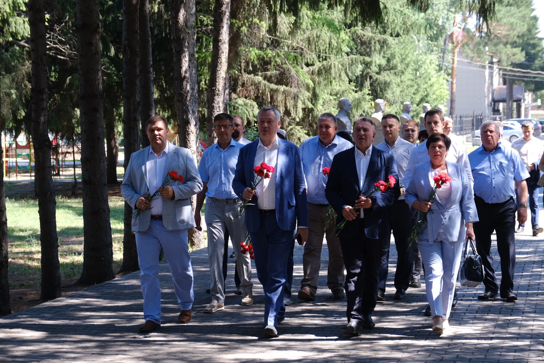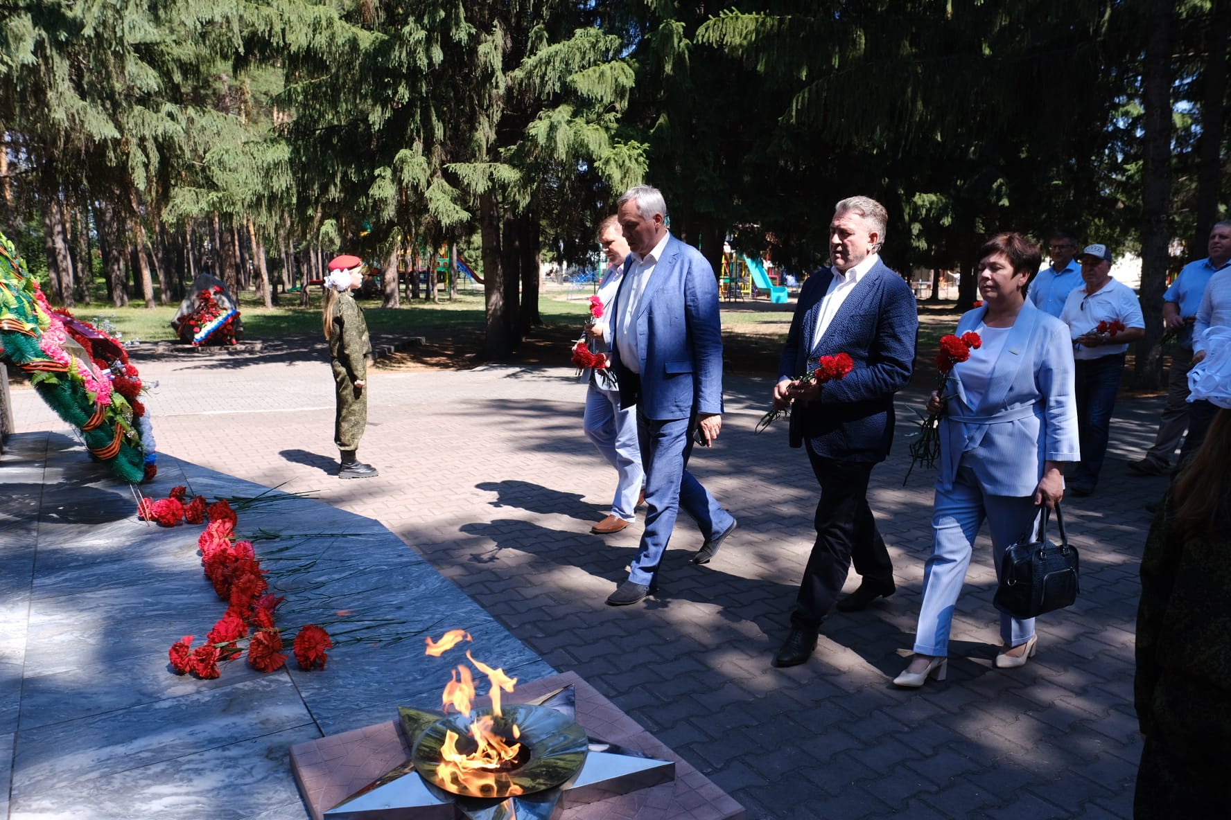 Также в Ордынском Андрей Травников и Андрей Шимкив возложили цветы к памятнику воинам Великой Отечественной войны.