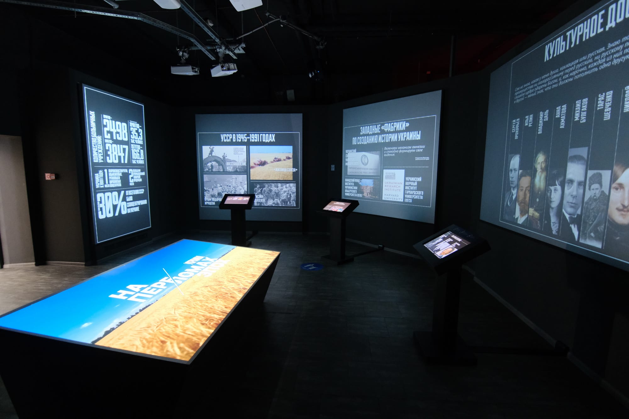Наряду с уникальными фотографиями, видеоматериалами и кинохрониками в экспозиции представлены карты, плакаты и многочисленные архивные документы. Из соображений объективности, также представлена трактовка исторических событий с точки зрения украинского государства.