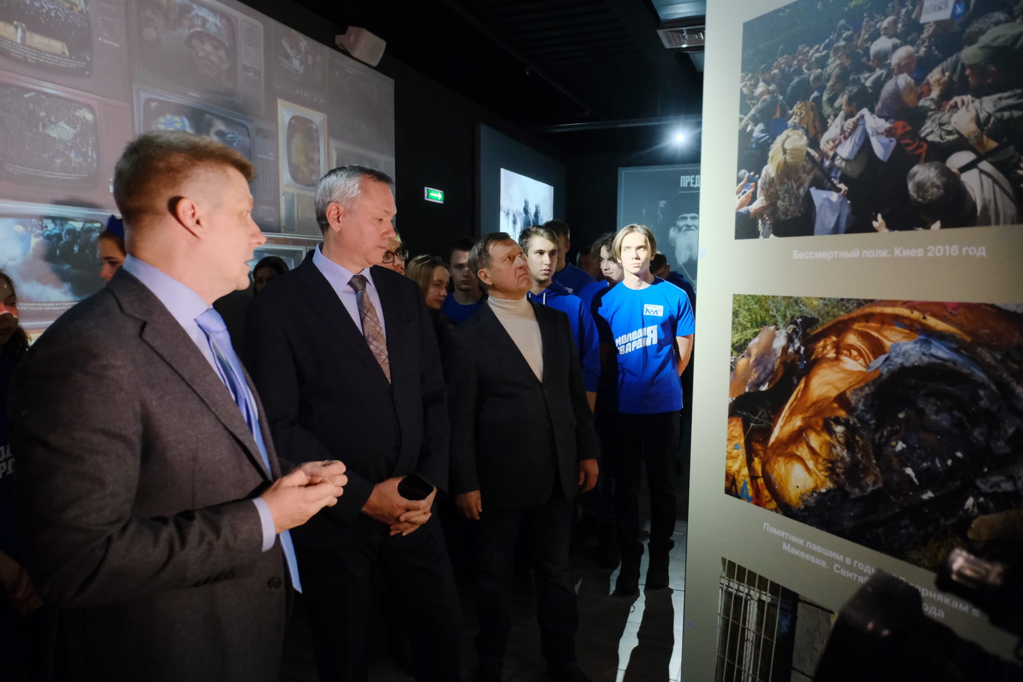 Самый лучший ответ – беспристрастные сухие объективные факты, исторические документы: всё, что сегодня представлено на этой выставке. Надеюсь, что она будет популярна у посетителей: проект смелый, сложный, но очень актуальный. В Новосибирской области живут образованные, грамотные люди, они могут самостоятельно разобраться в информации и на основании документов, которые здесь представлены, сделать выводы – где правда, а где ложь. И почему мы – российский народ, который вместе с украинским, белорусским и многими другими народами пережил страшную Великую Отечественную войну, – не можем смириться с тем, что происходит на территории современной Украины. Это самый лучший ответ и сегодняшним бандеровским идеологам и тем, кто ими кукловодит», — подчеркнул во время открытия выставки Губернатор.