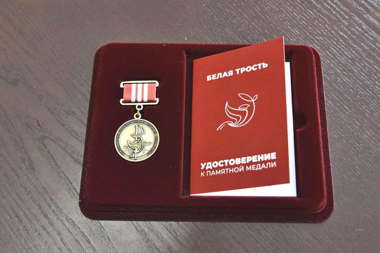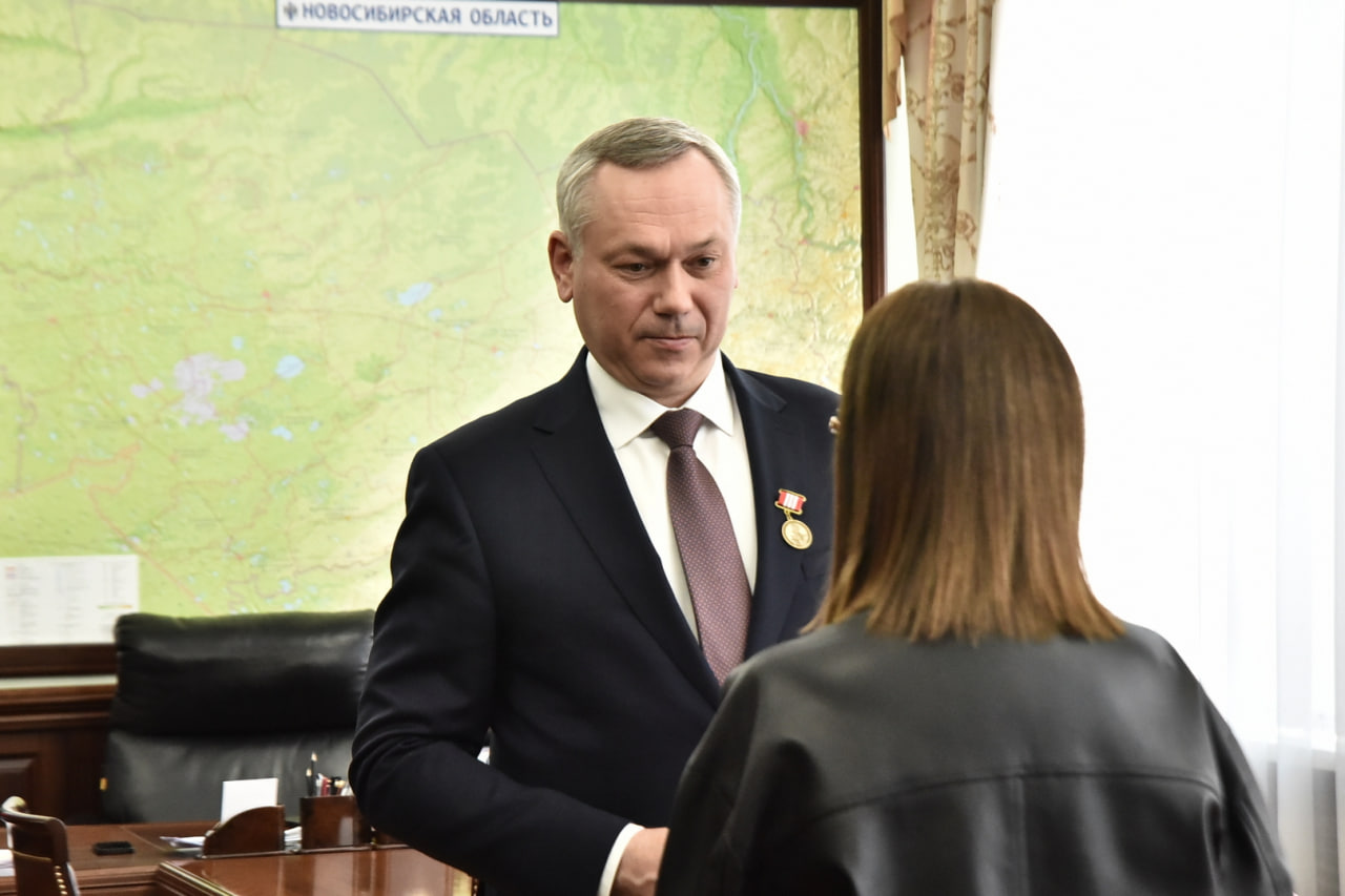 Также она вручила главе Новосибирской области памятную медаль за помощь в организации международного благотворительного фестиваля «Белая трость».