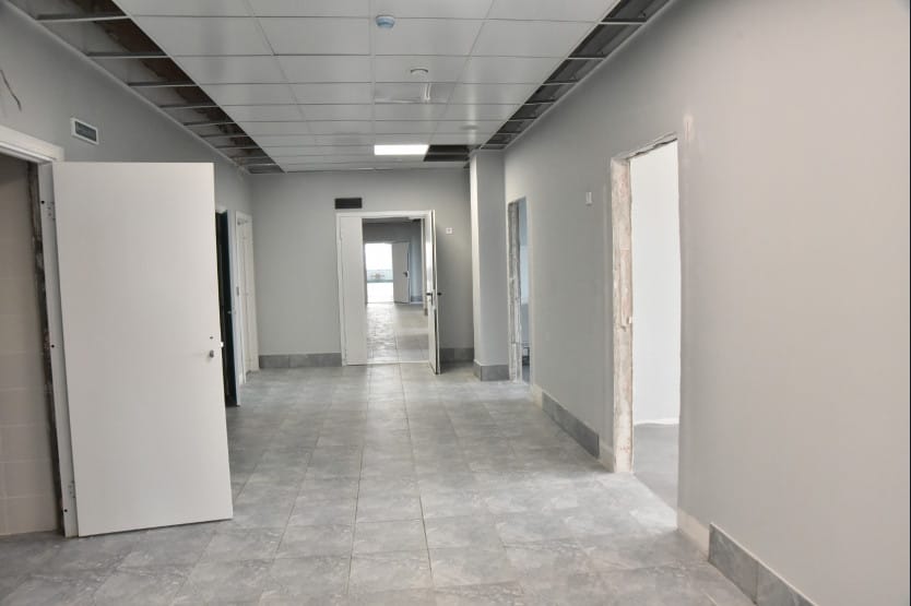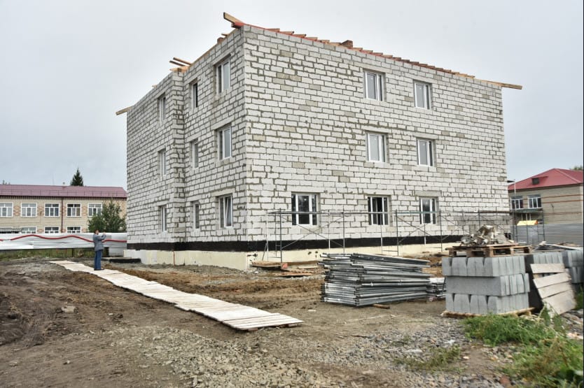 Этот социальный объект должен быть сдан уже в ноябре 2023 года. Коробка трехэтажного здания возведена в полном объеме. Установлены оконные блоки трех этажей. Ведутся работы по благоустройству территории.