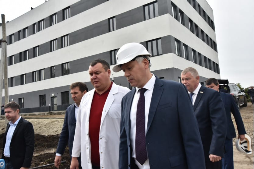 В ходе рабочей поездки в Доволенский район Губернатор Андрей Травников и Председатель Законодательного Собрания региона Андрей Шимкив проконтролировали строительство поликлиники и жилого дома для сотрудников бюджетной сферы, детей-сирот.