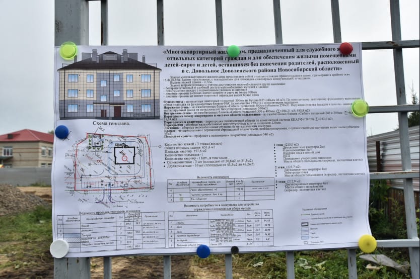 Жилой дом на 13 квартир, для сотрудников бюджетной сферы, детей-сирот и детей, оставшихся без попечения родителей, по ул. Ленина в с. Довольное, строится в рамках государственной программе региона «Стимулирование развития жилищного строительства в Новосибирской области на 2023-2025гг». Несколько квартир в доме предоставлены специалистам Доволенской ЦРБ, которые будут работать в новой поликлинике.