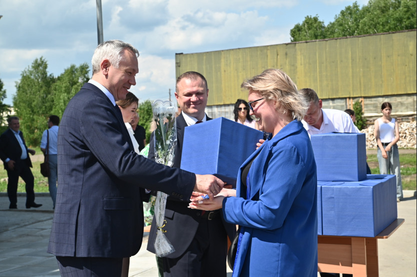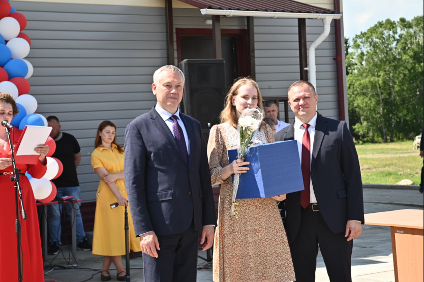 В с. Кыштовка Андрей Травников принял участие в открытии Дома молодежи, в торжественной церемонии вручения ключей от служебного жилья для молодых специалистов.