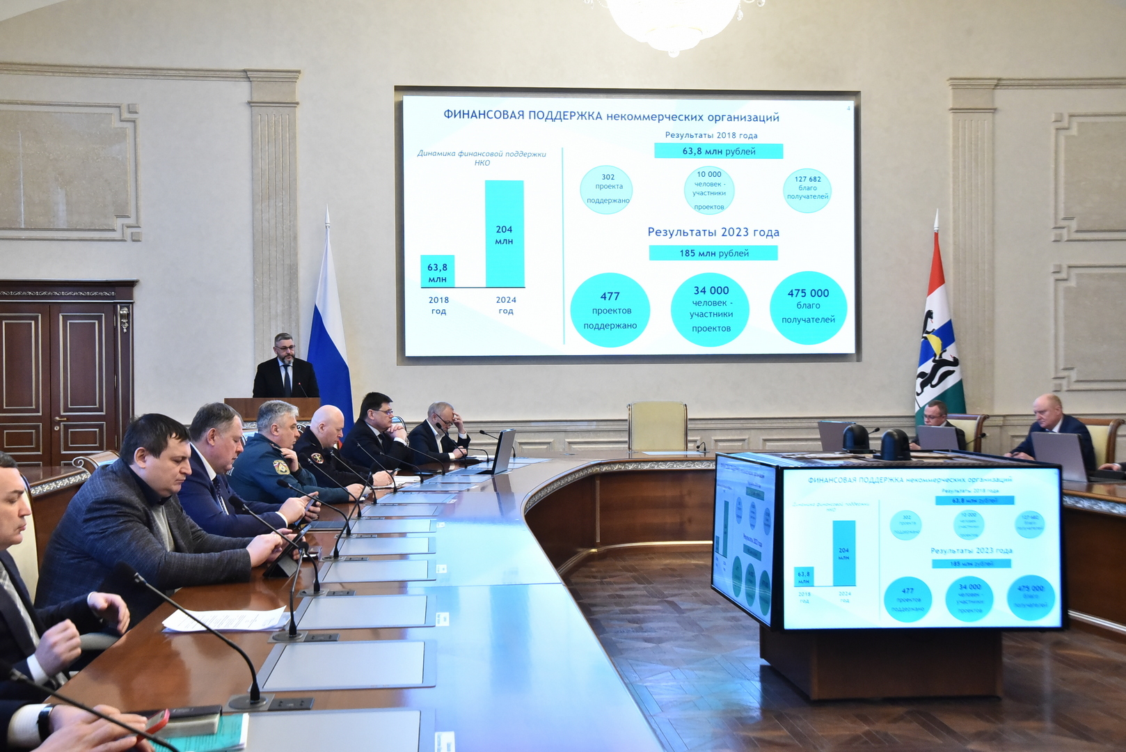 Губернатор Андрей Травников провёл оперативное совещание в Правительстве региона. С докладом об эффективности системы и новых направлениях государственной поддержки социально ориентированных некоммерческих организаций в регионе выступил заместитель Председателя Правительства Новосибирской области – министр региональной политики Андрей Клюзов.