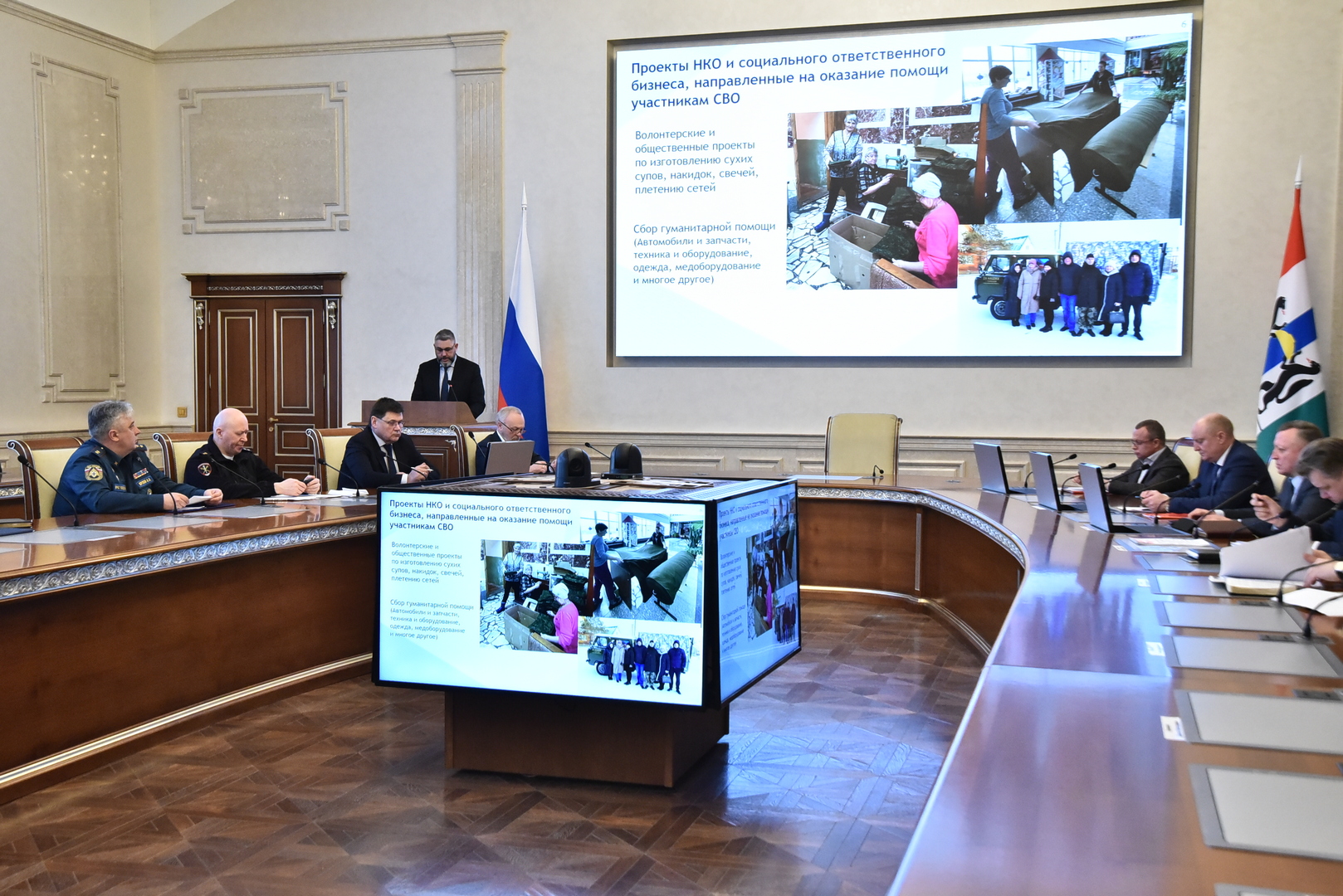 Отдельно отмечена работа по организации сбора гуманитарной помощи участникам специальной военной операции, а также для обеспечения жизнедеятельности населения в Луганской и Донецкой республиках, Херсонской и Запорожской областях. В этом процессе задействована большая командная система НКО и социально-ответственного бизнеса: Народный фронт, Общественная палата Новосибирской области, Комитет Семей воинов Отечества, инициативные группы граждан «СвоихНеБросаем», «Армия добра», «Зов 54», Женская ассамблея Новосибирской области, региональное отделение Союза женщин России, Опора России, Патриот 54.