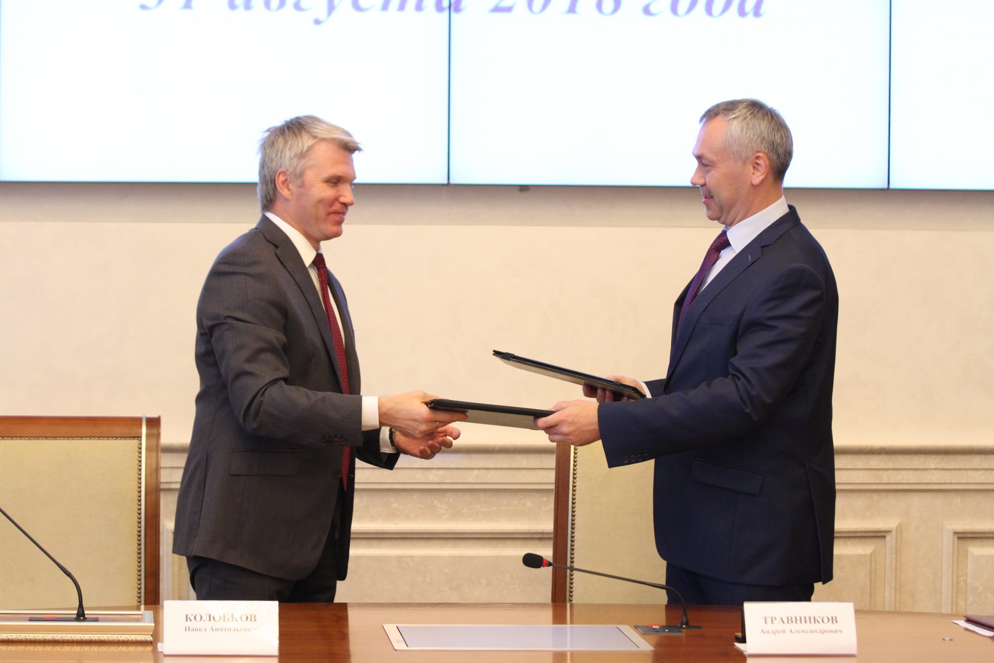 Подписано соглашение между Министерством спорта РФ и Правительством Новосибирской области о взаимодействии в сфере физической культуры и спорта нашего региона. Подписи под документом поставили министр спорта Российской Федерации Павел Колобков и глава Новосибирской области Андрей Травников.