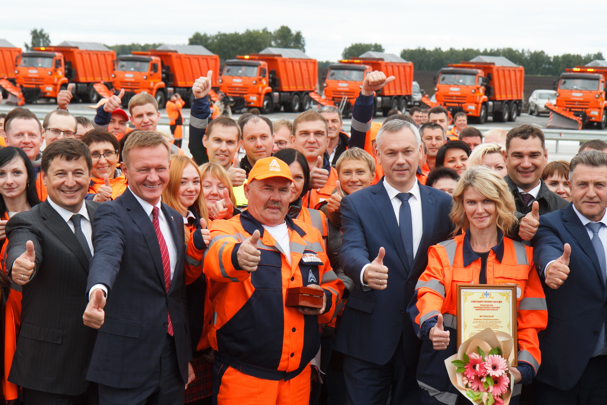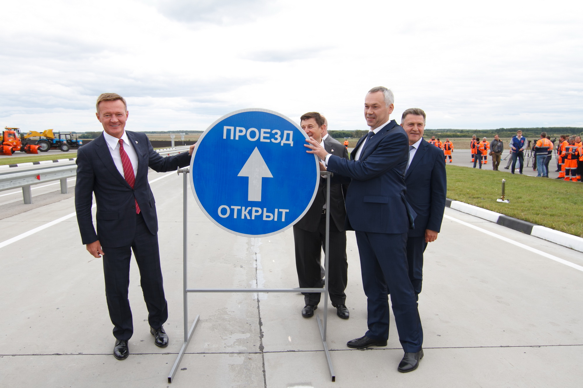Глава региона Андрей Травников и руководитель Росавтодора Роман Старовойт открыли движение по новому участку автодороги «Иртыш»