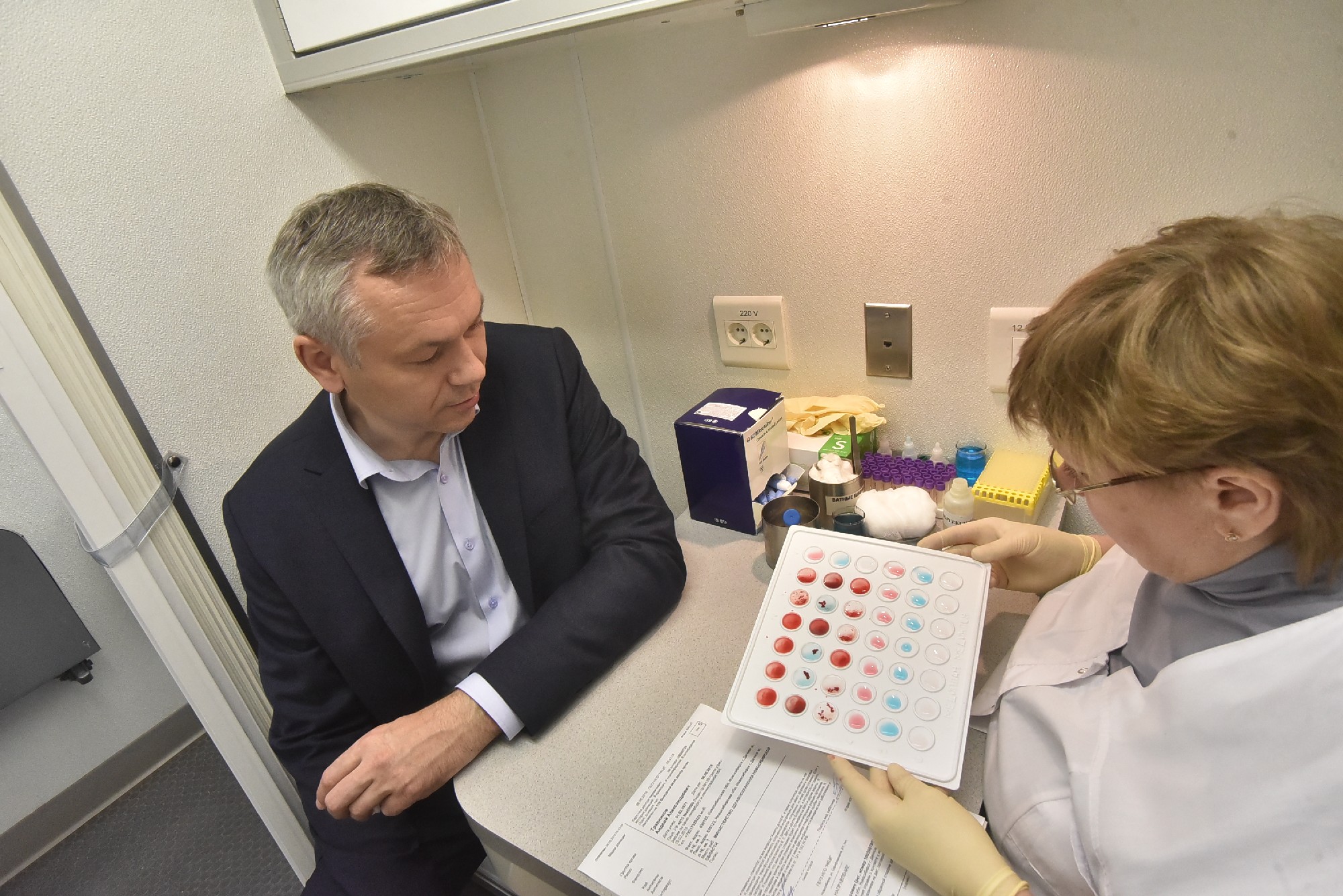 Глава Новосибирской области Андрей Травников лично ознакомился с работой мобильного пункта и сам сдал кровь. Андрей Александрович отметил, что в Новосибирской области развивается донорское движение, а число постоянных доноров с каждым годом растет. «Это благое дело. Для многих людей это - продление жизни. И не только для тех, кто должен получить плановую или экстренную оперативную помощь, но и для тех, кто нуждается в переливаниях каждый месяц. Донор, который сдаёт кровь, действительно дарит жизнь».