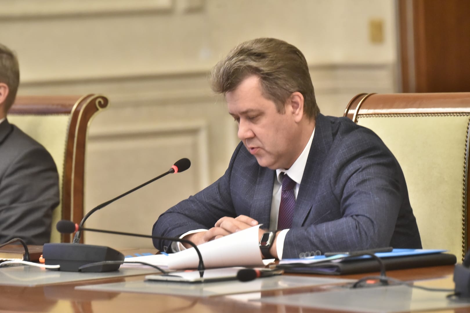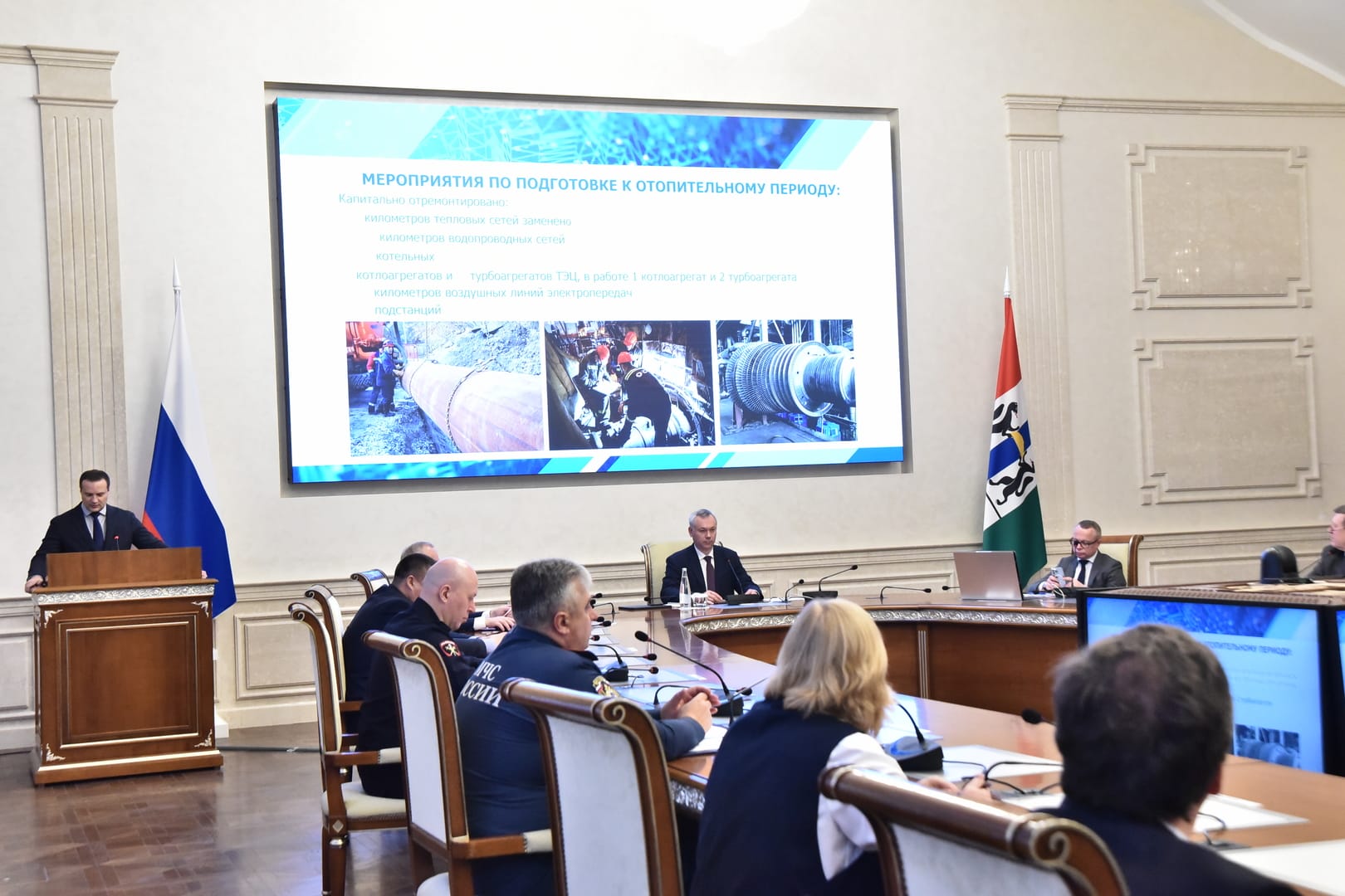 С докладом о выполнении плана мероприятий по подготовке объектов энергетики, коммунального комплекса, жилищного фонда и социально-культурной сферы к работе в отопительный период 2022-2023 выступил министр жилищно-коммунального хозяйства и энергетики Новосибирской области Денис Архипов.