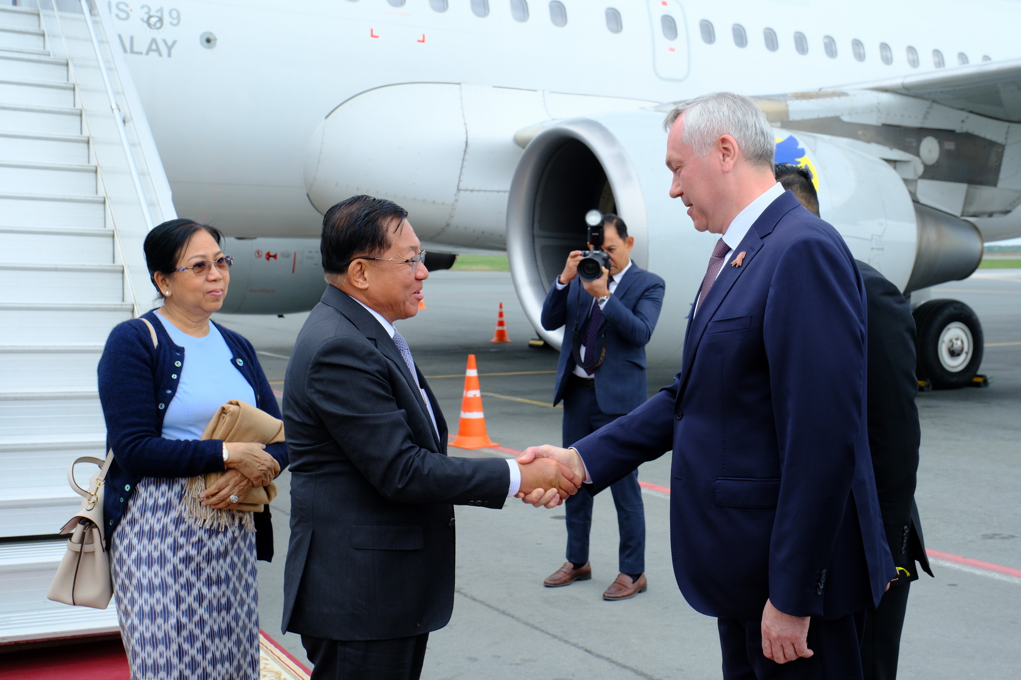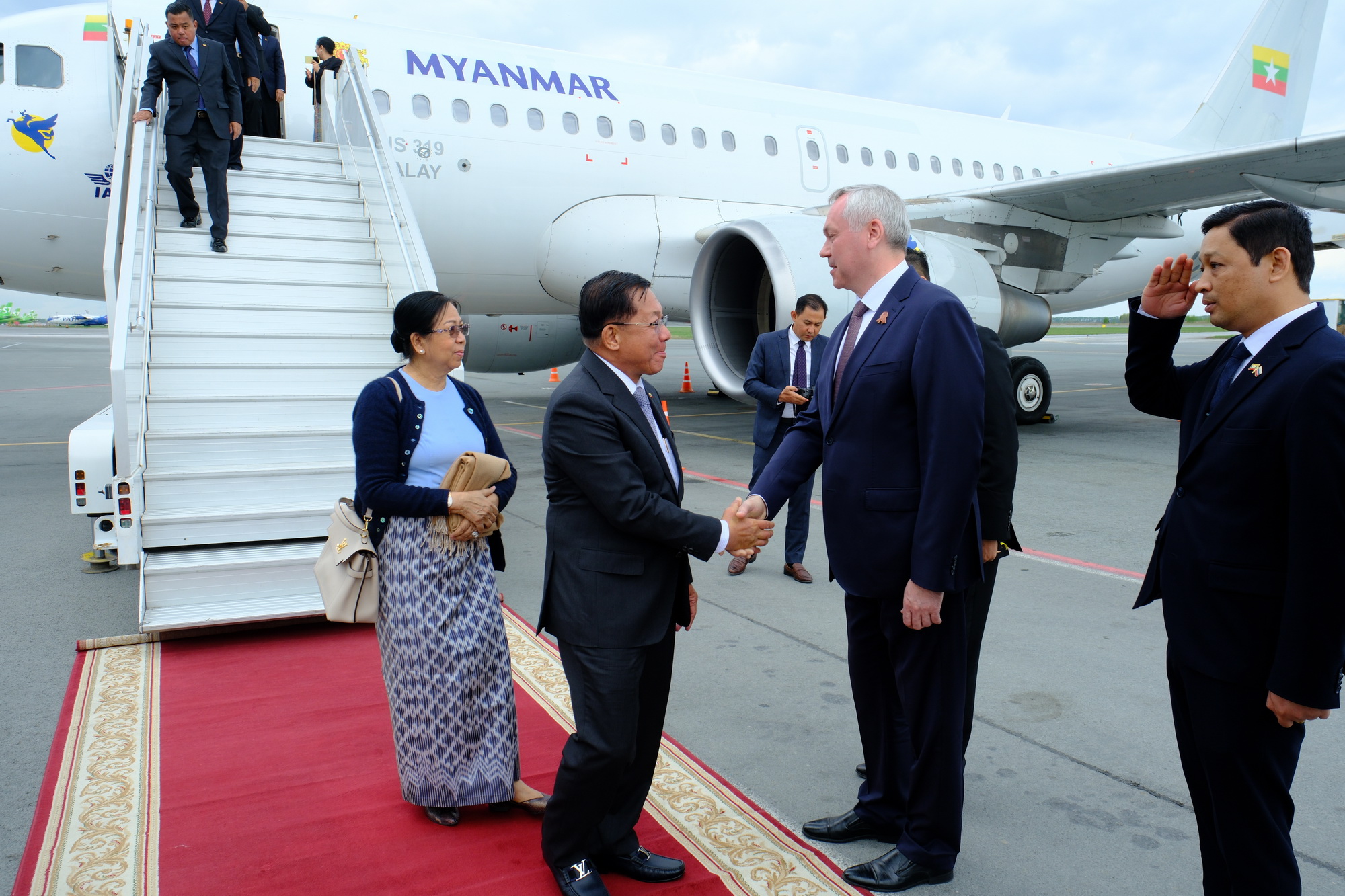 Глава Новосибирской области встретился с представительной делегацией Республики Союз Мьянма во главе с Премьер-министром Республики Союз Мьянма Мин Аун Хлайном во время технической стоянки в новосибирском аэропорту «Толмачёво».
