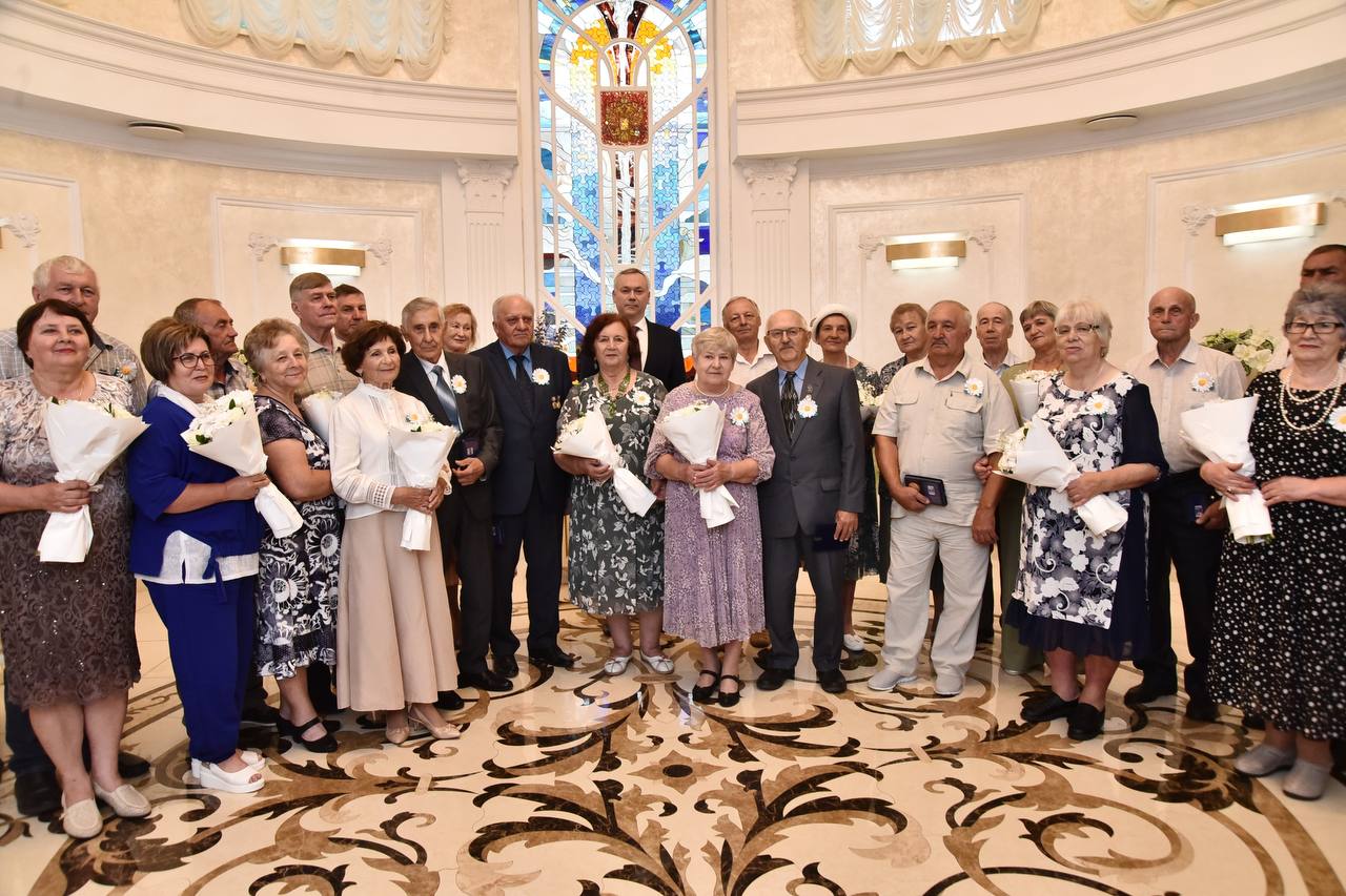 Глава региона подчеркнул, что сохранение и пропаганда семейных традиций сегодня особенно важны для всех нас: «Мы возвращаемся к правильным ценностям. И самый лучший способ их продвижения – личный пример. Вы подаёте такой пример долголетием совместной жизни, всей вашей биографией. В этот день мы отдаём дань уважения крепости вашей любви, вашему терпению. В семье каждого человека есть разные периоды, но вы своей жизнью наглядно доказываете народную мудрость: милые бранятся – только тешатся. Эту мудрость надо передавать новым поколениям, сегодняшним юношам и девушкам, молодым семьям, которые, глядя на вас, будут мечтать об этом счастье – долгой и крепкой семейной жизни, огромном количестве детей, внуков и правнуков, которые есть у вас», – обратился к собравшимся Андрей Травников.